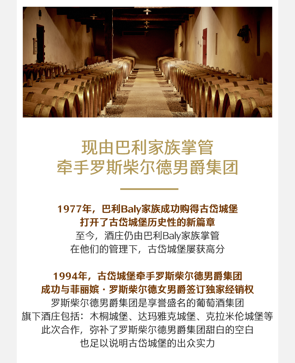 1977年,Marcel Baly先生和他的两个儿子Dominique Baly和Philippe Baly一起购得了酒庄,并一直掌舵酒庄至今。1994年,古岱酒庄同菲丽嫔 · 罗斯柴尔德(Philippine de Rothschild)签订了一份合约,将酒庄的独家经销权签给菲利普 · 罗斯柴尔德S.A 公司(Baron Philippe de Rothschild S.A)。