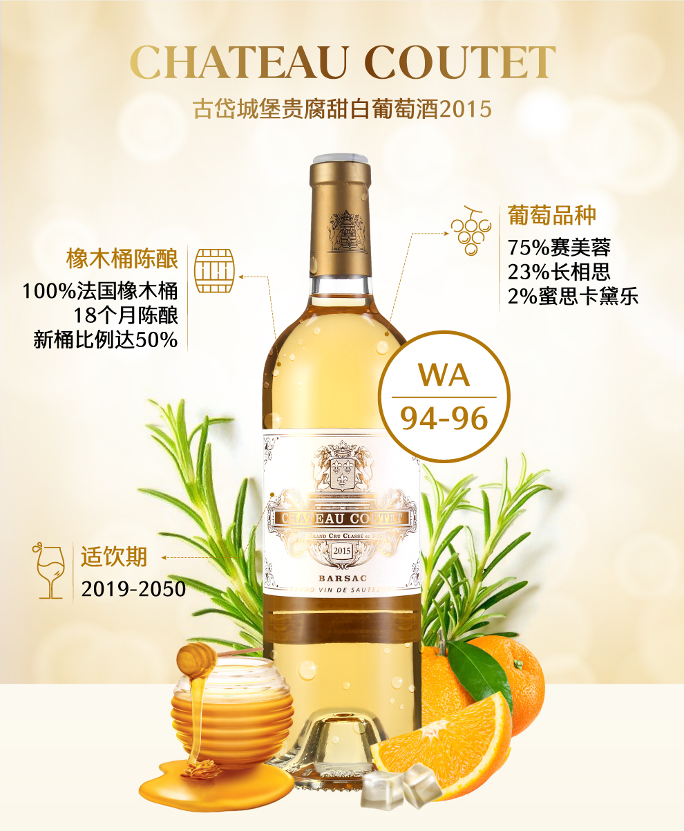 1855苏玳和巴萨克一级庄名庄贵腐酒,深受女性喜爱,WA高分94-96