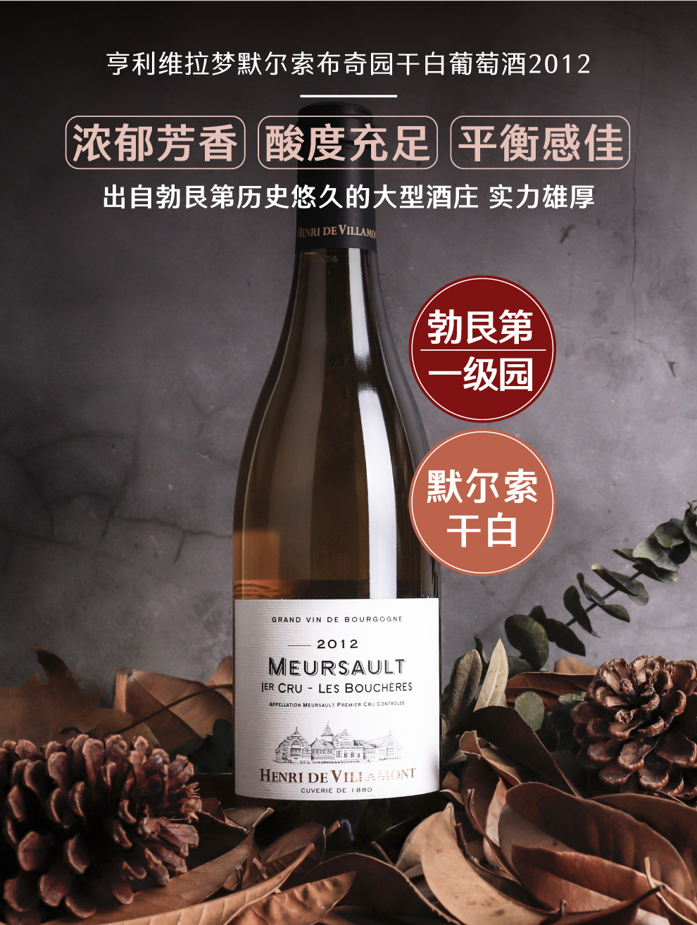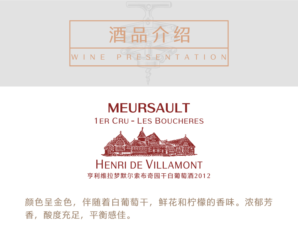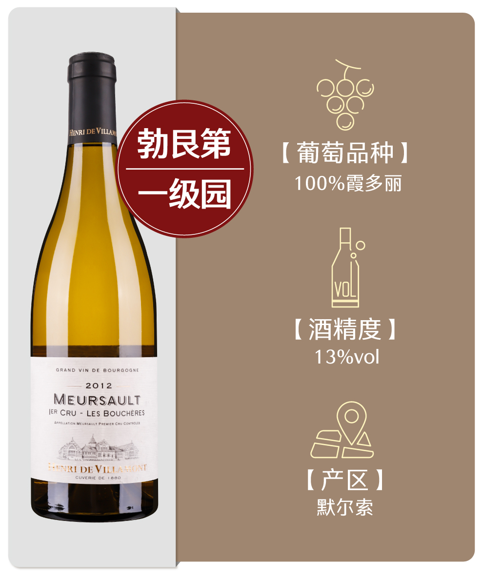 亨利维拉梦默尔索布奇园干白葡萄酒2012