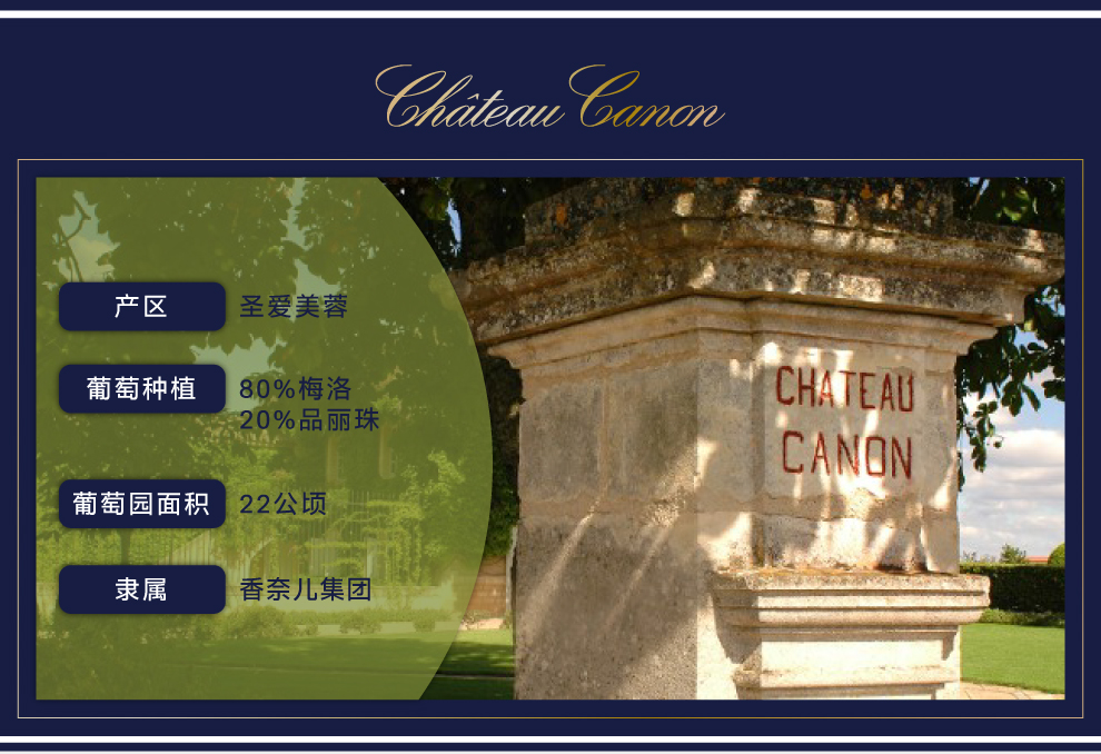香奈儿集团(CHANEL)1996年买下法国波尔多圣爱美蓉产区(St.Emilion)的大炮城堡(Château Canon),从此酒庄的价值与日俱增。除了传统的时尚领域,香奈儿(CHANEL)更将它传奇的色彩注入了葡萄酒。