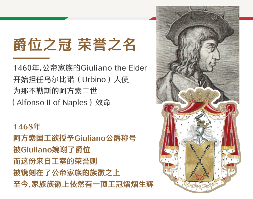 公帝家族可追溯至查理大帝时期(Charlemagne,公元742-814),其祖先Consorteria dei Filippi家族被大帝册封骑士。
