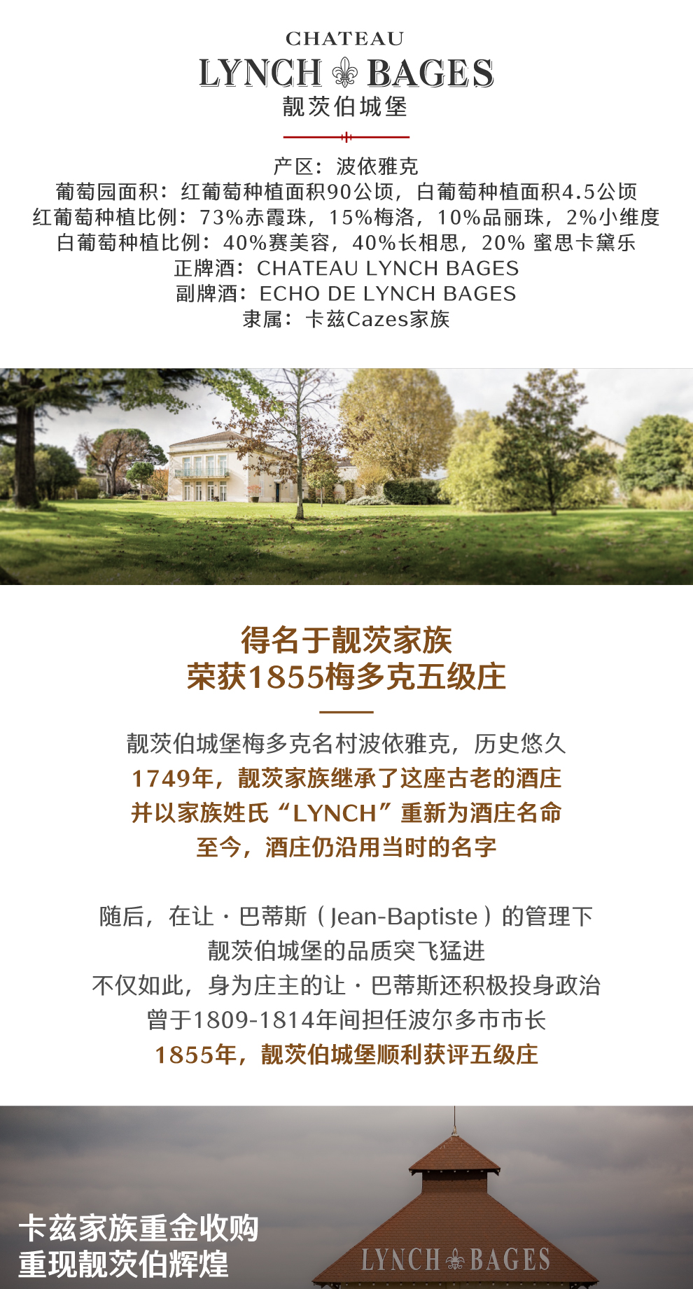法国日常餐桌上的两大常客:面包和葡萄酒,都与靓茨伯酒庄有着或深或浅的渊源。卡兹家族的商业生涯,最早起源于面包,而最终却缘定葡萄酒。1870年一对来自法国阿里埃日省的农民夫妇来到了波尔多,扎根于离女爵不远的小村庄,三个孩子相继出生,二儿子Jean-Charles先是迫于生计做了一名面包师,一战后以上尉军衔荣归故里,后在银行谋得好职位,在经济大萧条时期购买了靓茨伯酒庄,他是一位卓有成就的酿酒师,也就是在他的执掌下靓茨伯大获美国早期酒评家Alexis Linchine的好评,声明逐渐远播。他的儿子Andre先是成立了一家保险公司,后在1951--1993年年间任职波尔多市长。不得不说这是一个人才辈出的家族,Andre儿子Jean-Michel和女儿Sylvie Cazes是两位在波尔多无人不识的风云人物,前者创立了Domaine Jean-Michel Cazes集团,后者除了是家族事业的共同拥有者之外,,于2008-2012年间担任波尔多名庄联盟的主席,2013年更买下了圣爱美蓉列级酒庄Chateau Chauvin.