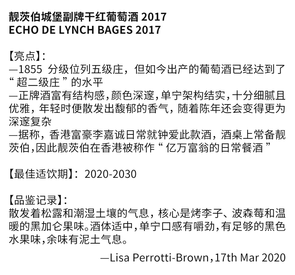 就风格而言,作为波尔多精致的葡萄酒款,靓茨伯酒庄的葡萄酒总是以层次的丰富性和浓郁的水果味令人折服,这些酒比木桐更时髦,比拉菲更优雅。因此此款酒在波尔多拥有非常高的评价,深受饮家和葡萄酒好爱者的追捧。