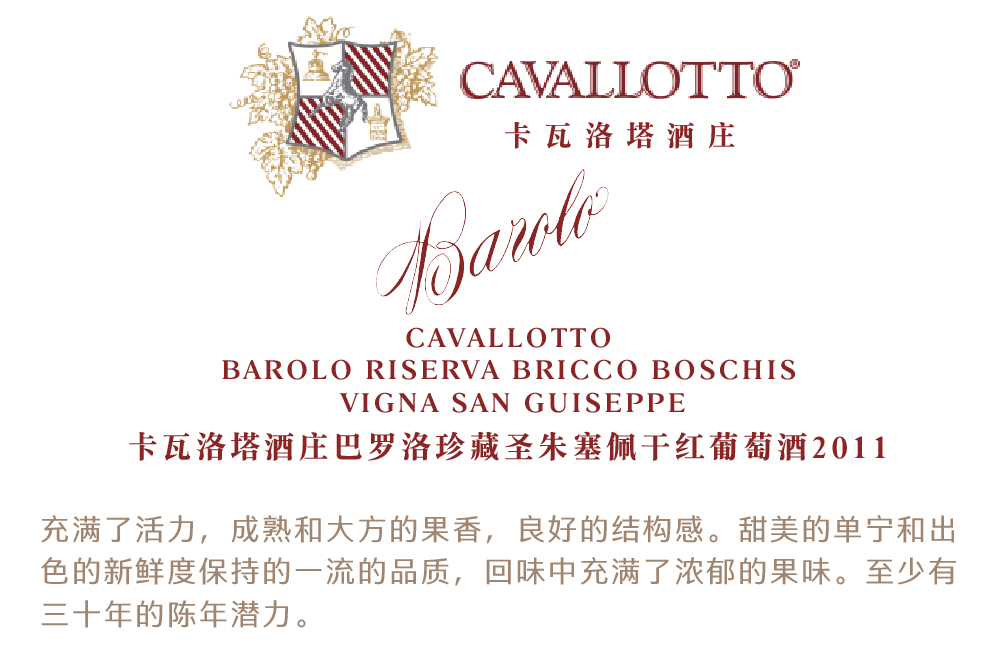 卡瓦洛塔酒庄巴罗洛珍藏圣朱塞佩干红葡萄酒2011