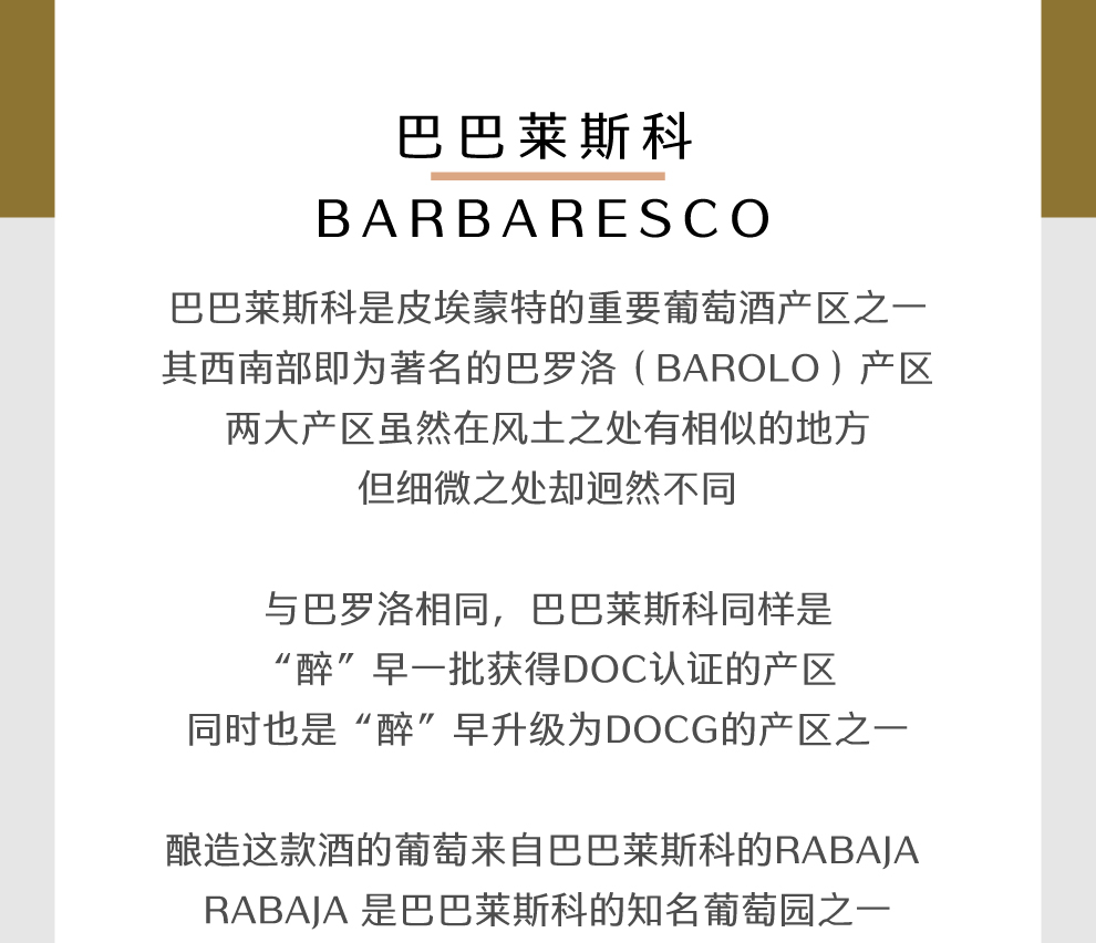 酒庄会直接放弃出品当年份的瓶装酒。如今,酒庄已成为巴巴莱斯科的一颗璀璨明珠。