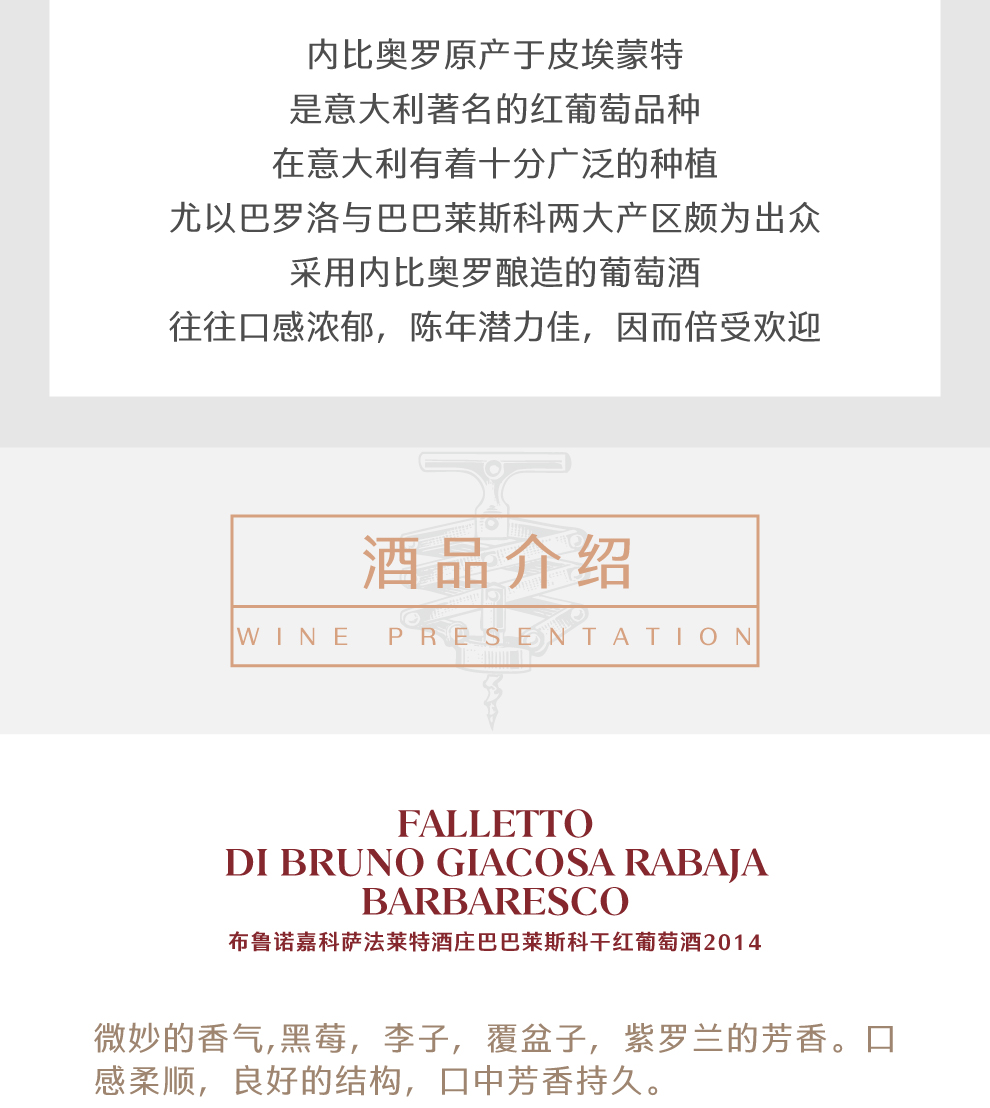 布鲁诺嘉科萨法莱特酒庄巴巴莱斯科干红葡萄酒2014