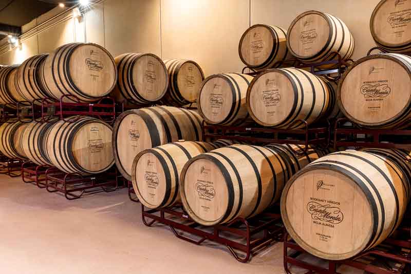 卡萨多莫拉莱斯酒庄的酒窖常年保持理想的温度和湿度,为葡萄酒的熟化和陈年提供了最优秀的储存环境。酒窖中约有1000个橡木桶,其中有700个法国橡木桶和300个美国橡木桶,橡木桶的使用年限最多为5年,之后便会购买新的橡木桶进行补充。
