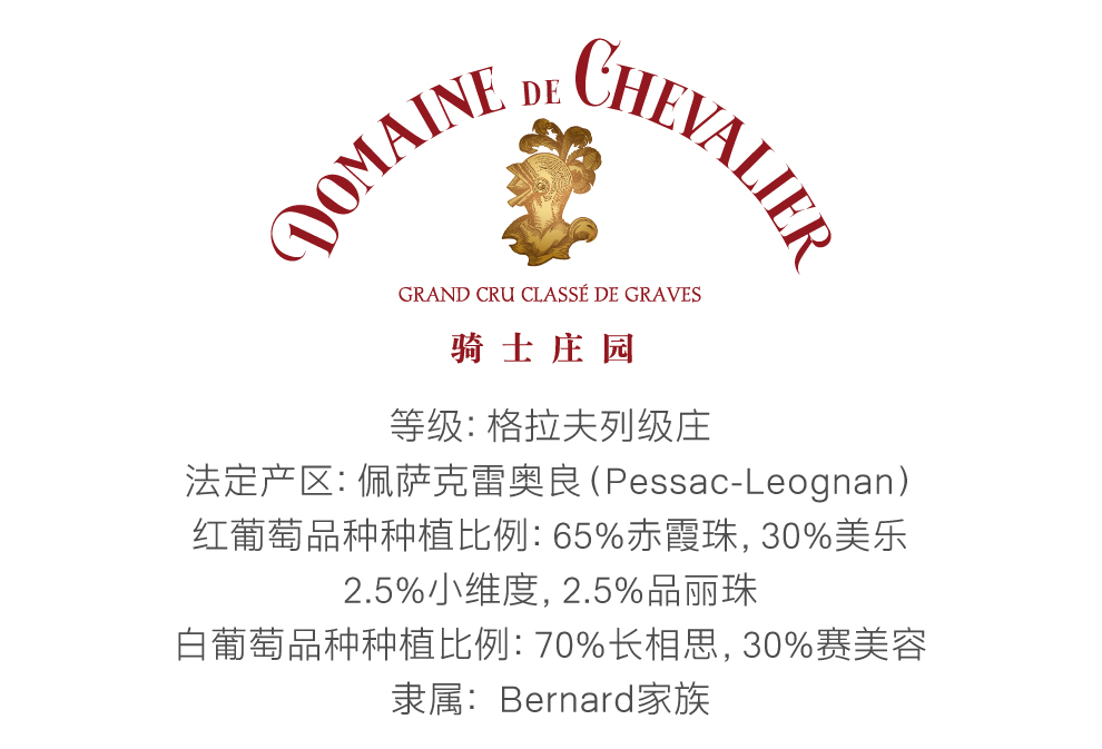 坐落于法国波尔多(Bordeaux)格拉夫(Graves)的佩萨克-雷奥良(Pessac-Leognan)产区。格拉夫仅有6座酒庄的红、白葡萄酒皆入选列级庄等级,而骑士便是其中之一。
