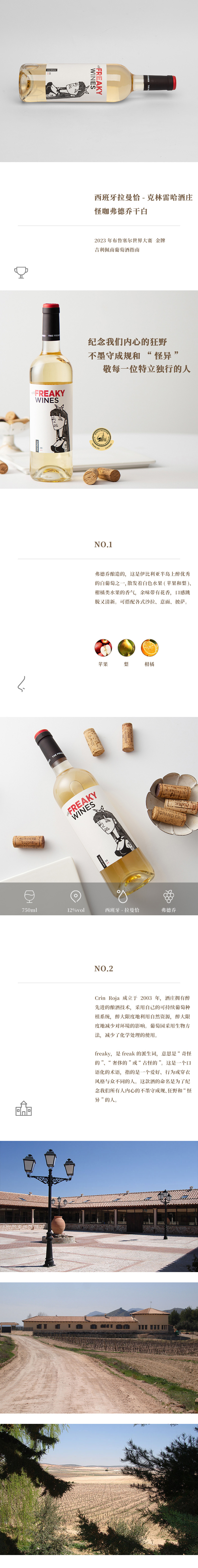 跨境 品牌商户 克林雷哈酒庄怪咖弗德乔干白葡萄酒   Freaky wines Verdejo White