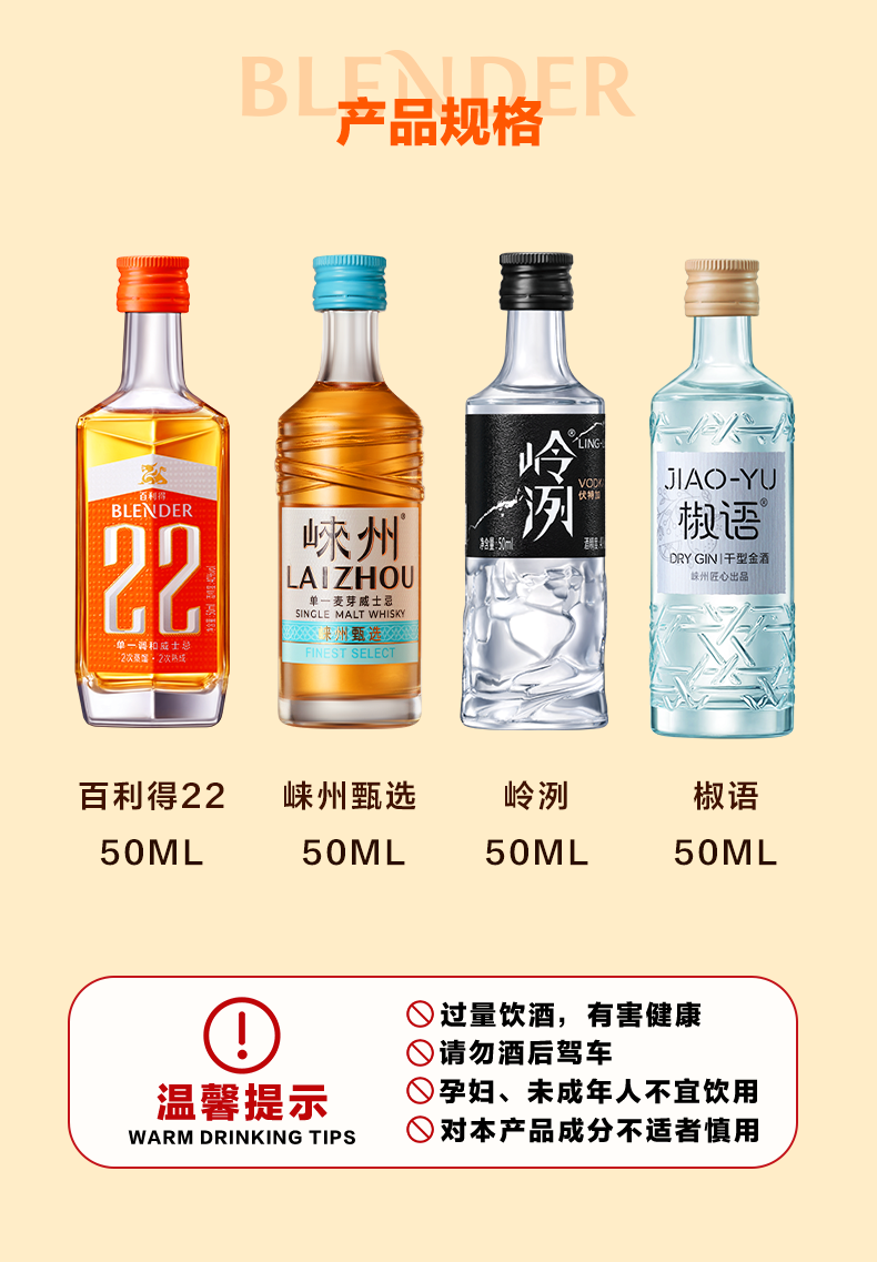 • 产品名称:崃州威士忌小酒便利店露营调酒小酒版50ml*4洋酒威士忌鸡尾酒小瓶基酒
