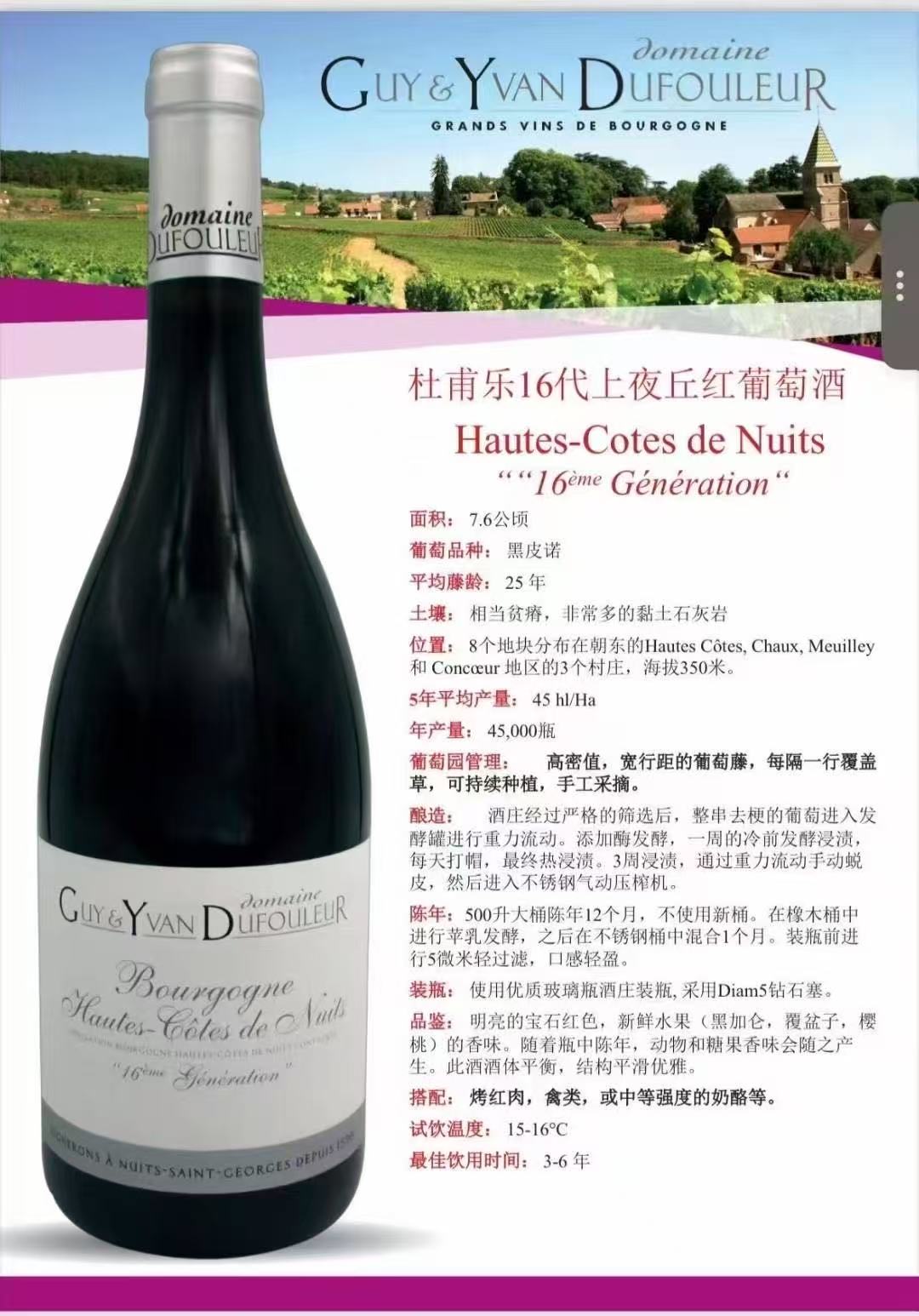 一般贸易 迎新特卖 品牌商户 杜甫乐16代上夜丘红葡萄酒2019   DOMAINE GUY ET YVAN DUFOULEUR, HAUTES COTES DE NUITS, 16EME GENERATION ROUGE 2019