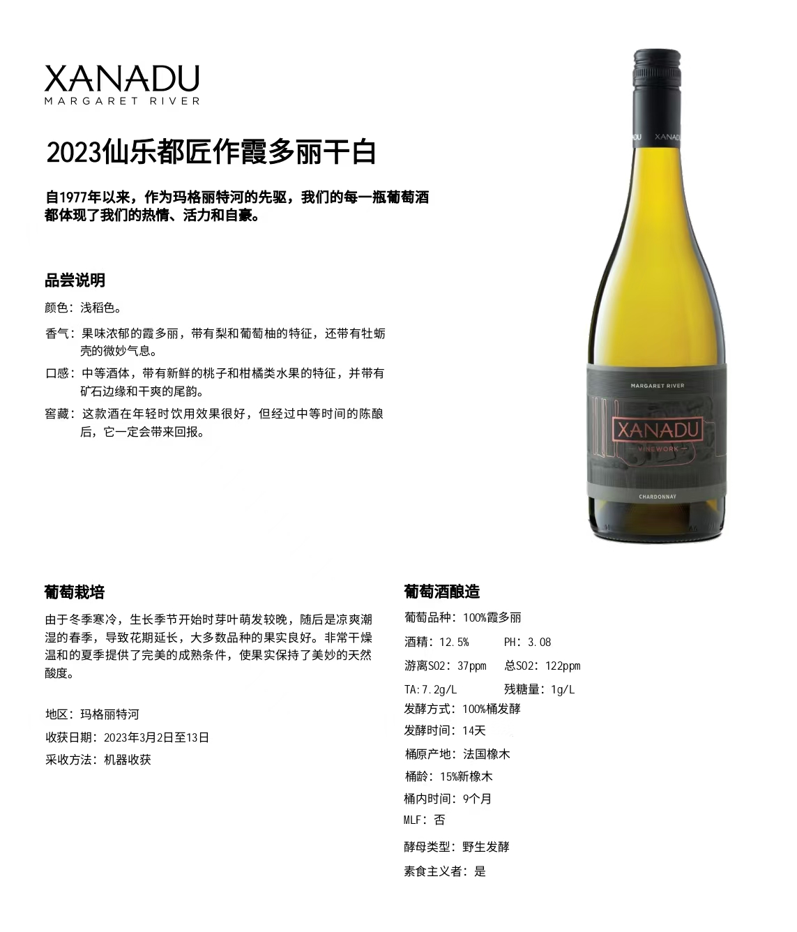 • 产品名称:仙乐都匠作霞多丽干白葡萄酒
