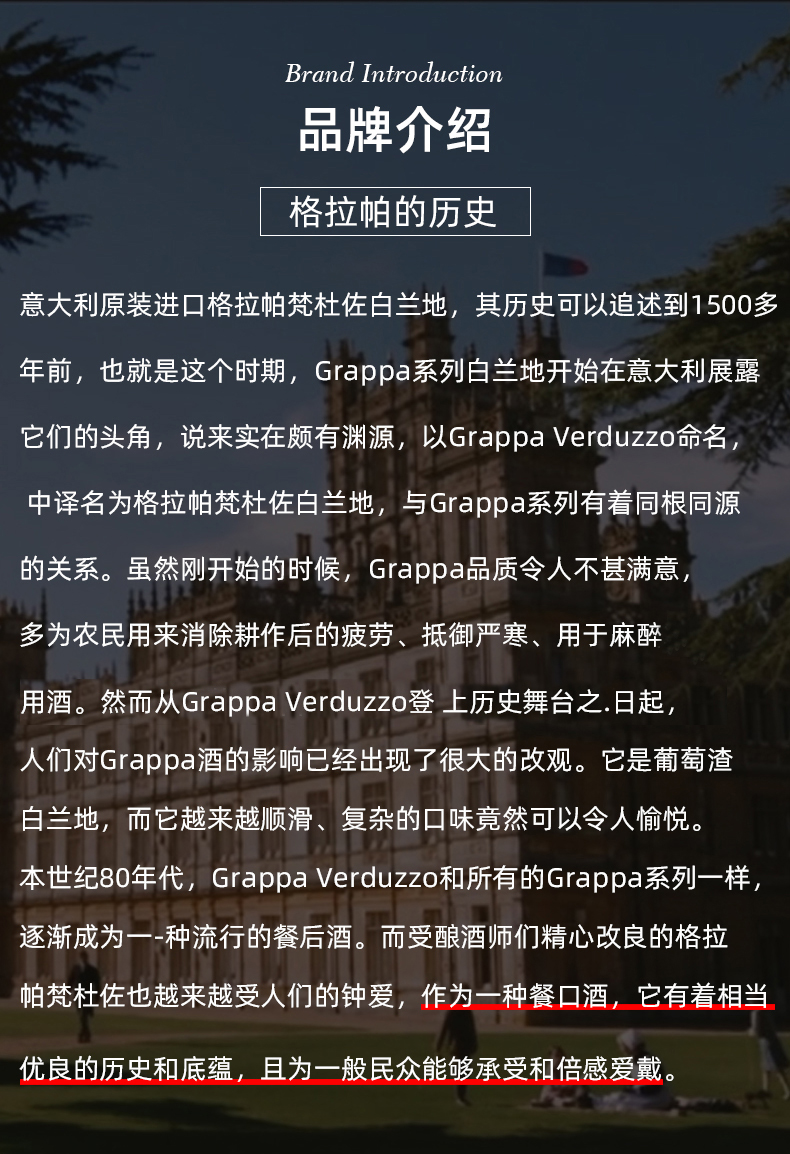 一般贸易 品牌商户 格拉帕梵杜佐白兰地   Grappa Verduzzo