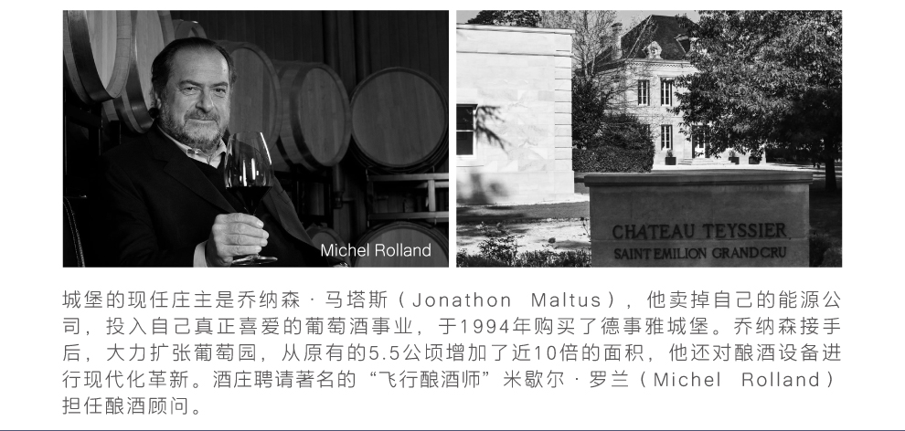 城堡的现任庄主是乔纳森·马塔斯(Jonathon Maltus),他卖掉自己的能源公司,投入自己真正喜爱的葡萄酒事业,与1994年购买了德事雅酒庄。乔纳森接手后,大力扩张葡萄园,从原有的5.5公顷增加了近10倍的面积,他还对酿酒设备进行现代化革新。酒庄聘请著名的“飞行酿酒师”米歇尔·罗兰(Michel Rolland)担任酿酒顾问。