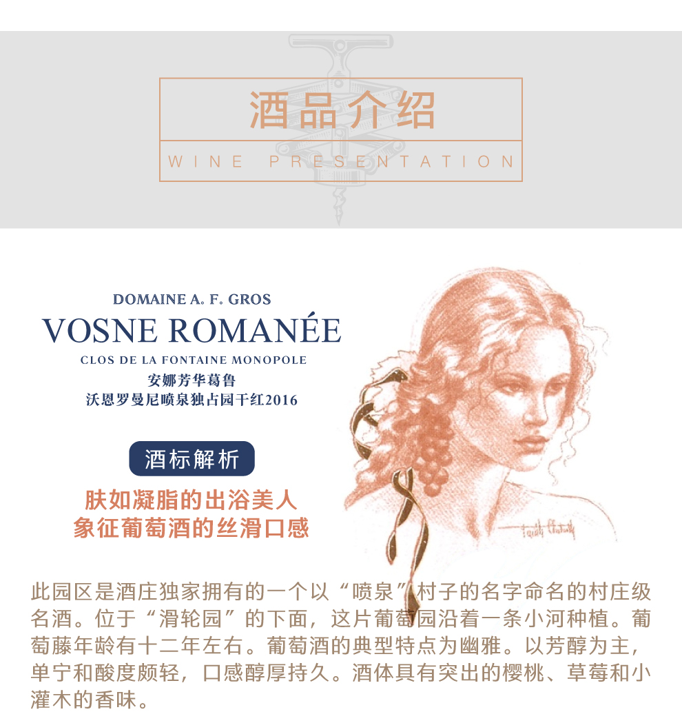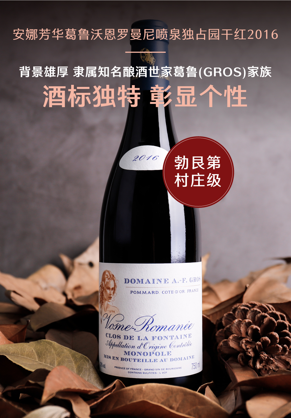 安娜芳华葛鲁沃恩罗曼尼喷泉独占园干红葡萄酒2016