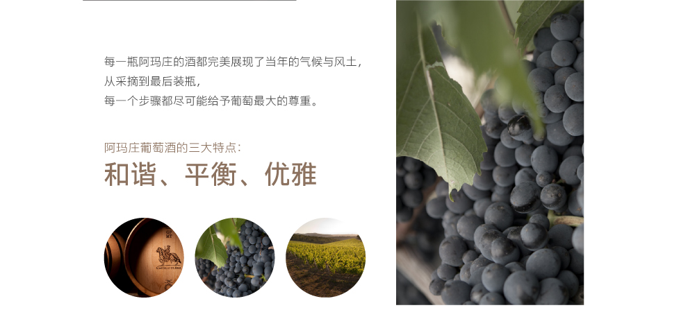 阿玛酒庄葡萄酒的三大特点:和谐、平衡及优雅。