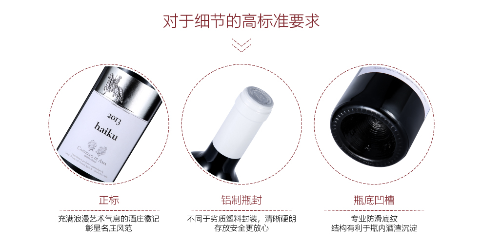 陈年至少30个月才能上市,其中包含至少3个月瓶陈;最低酒精度13%; 每公升固态萃取物高于26克;通过公正第三方的盲品选拔.