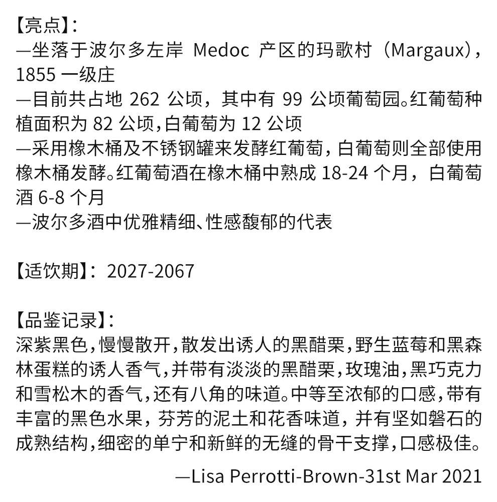 等级/Classification: 1855梅多克列级酒庄一级庄 Premier cru classe en 1855 Medoc
