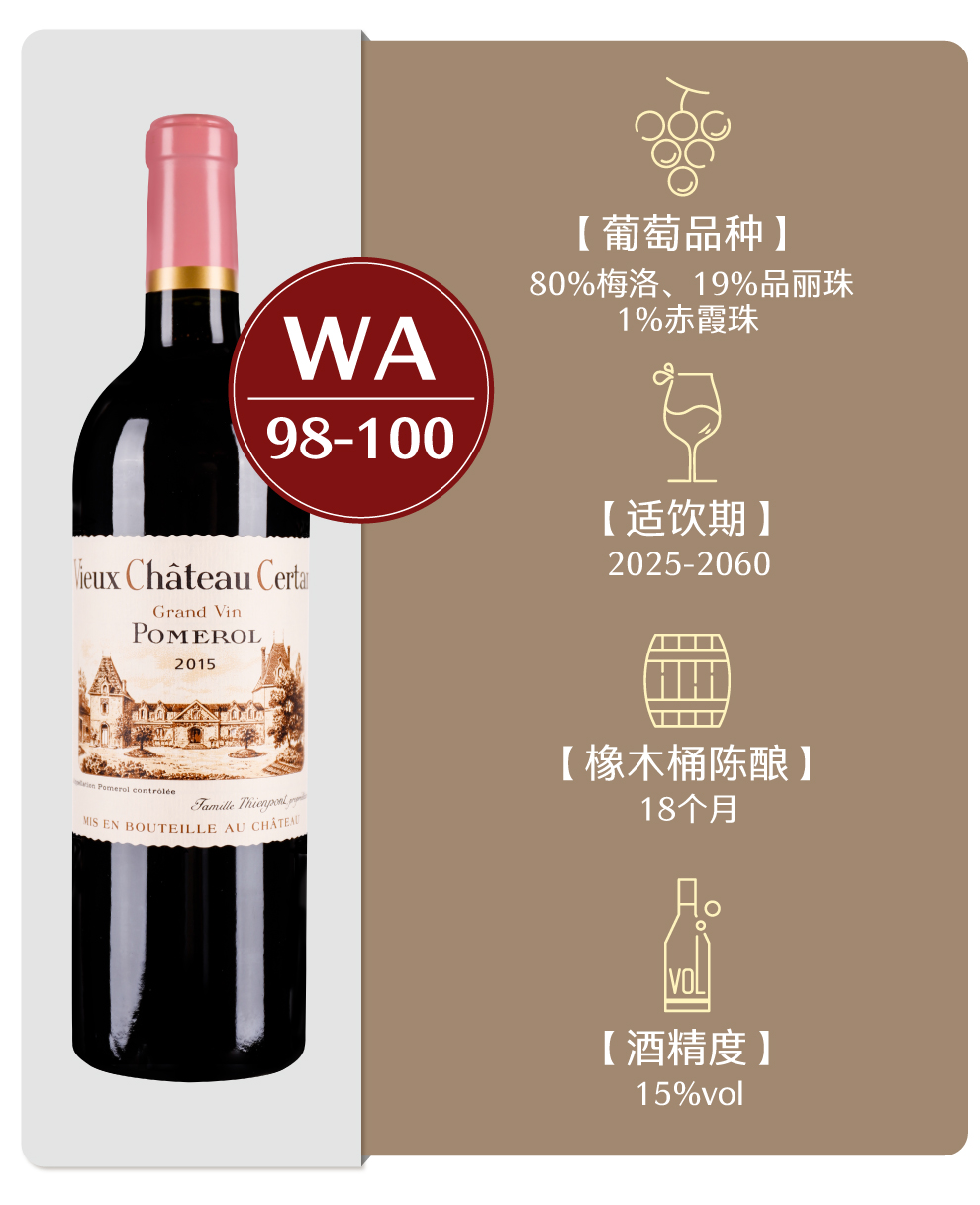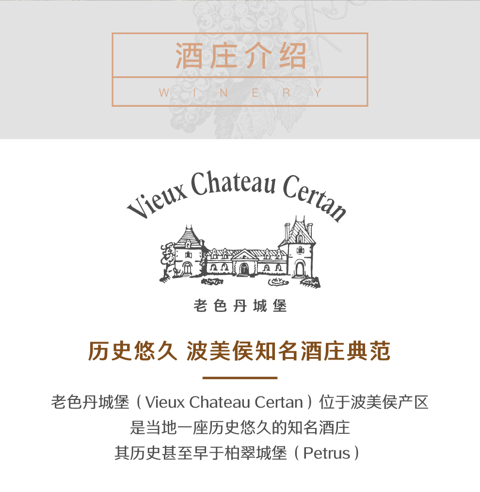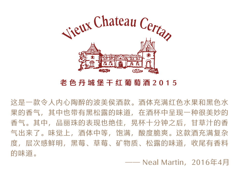 另外,Alexandre与其堂兄于1979年也购入了里鹏(Le Pin),但Alexandre只占1/6股份,负责里鹏葡萄树的种植管理。他的大部分时间还是花在老色丹城堡。现蒂安鹏(Thienpont)家族拥有两个波美侯地区最优秀的名庄。二十世纪中后期,柏图斯及里鹏的成绩实在太骄人了,所以老色丹的名气才被超过,但老色丹仍然是波美侯名列前茅的佳作。