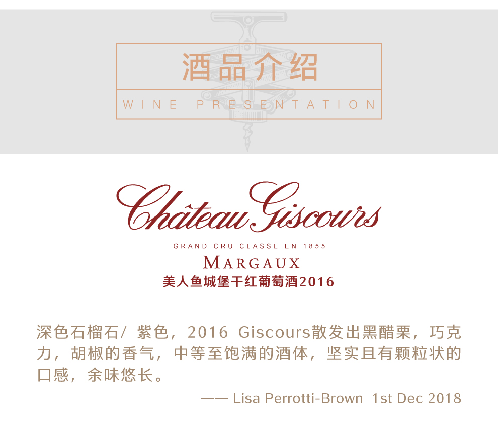 美人鱼城堡(Chateau Giscours)在1855年梅多克评级中被评为三级酒庄,因酒庄的酒标是一个美人鱼图像而被世人亲切地唤作“美人鱼”。美人鱼城堡坐落在世界顶级葡萄酒产区玛歌(Margaux),是梅多克产区最大的酒庄之一,也是波尔多产区最大的酒庄之一,距离波尔多西北部20公里,东起加斯科尼(Gascony)海湾、吉伦特(Gironde)河口,横跨在巨大的三角形梅多克半岛。