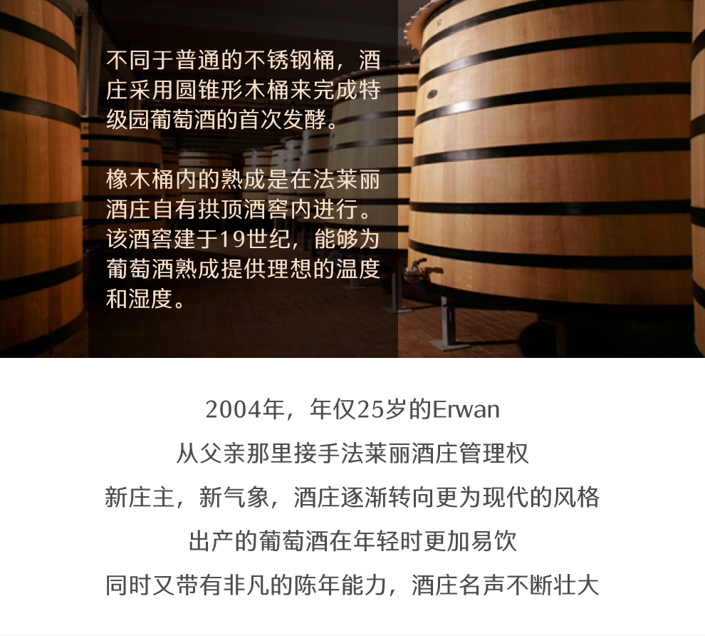 Erwan 是酒庄的第7代庄主,他在传承家族历史的基础上不断发扬光大。2004年,年仅25岁的Erwan从父亲那里接手酒庄管理权。新庄主,新气象,酒庄逐渐转向更为现代的风格。出产的葡萄酒在年轻时更加易饮,同时带有非凡的陈年能力。酒庄名声不断扩散出去。这不仅仅是个家族故事,犹如朝代的更替 ! 法莱丽家族自1825年开始就立足于夜之圣乔治,致力于勃艮第特级园葡萄酒的酿造。