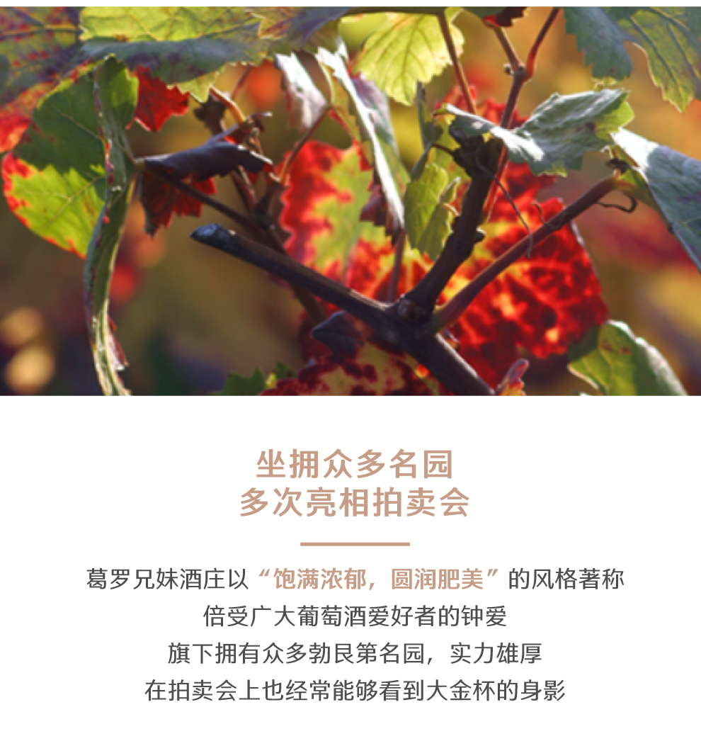 Domaine Gros Frere & Soeur 坐拥Vosne-Romanée村的顶级葡萄园,常常是品酒会以及拍卖会上备受瞩目的焦点。尤其是特级葡萄园的Richebourg Grand Cru(约 0.7ha)、Grands Echezeaux Grand Cru(约 0.3ha)与 Clos Vougeot Grand Cru "Musigni"(约 1.5ha,特级葡萄园Musigny 旁)。