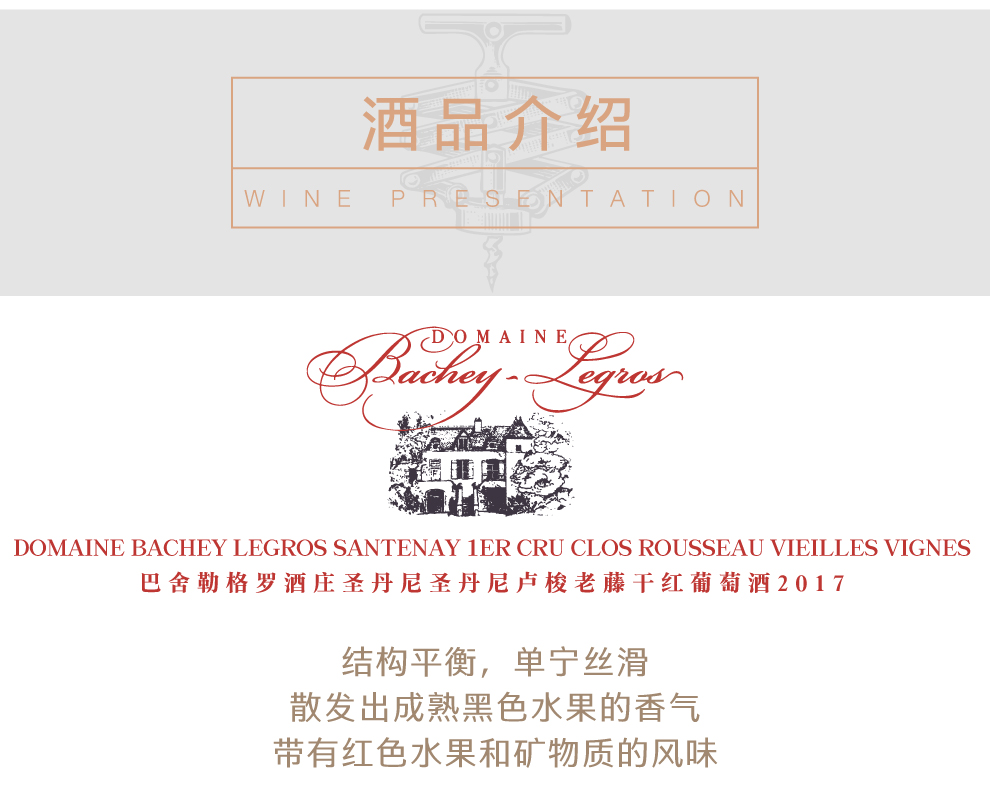 巴舍勒格罗酒庄圣丹尼卢梭老藤干红葡萄酒2017