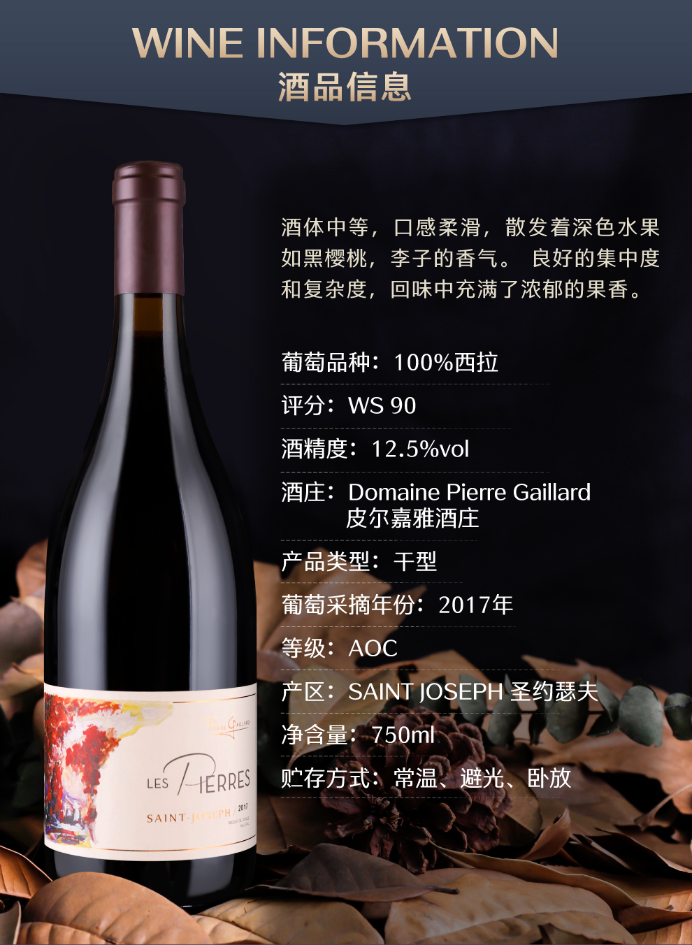 皮尔嘉雅酒庄圣约瑟夫皮埃尔干红葡萄酒2017