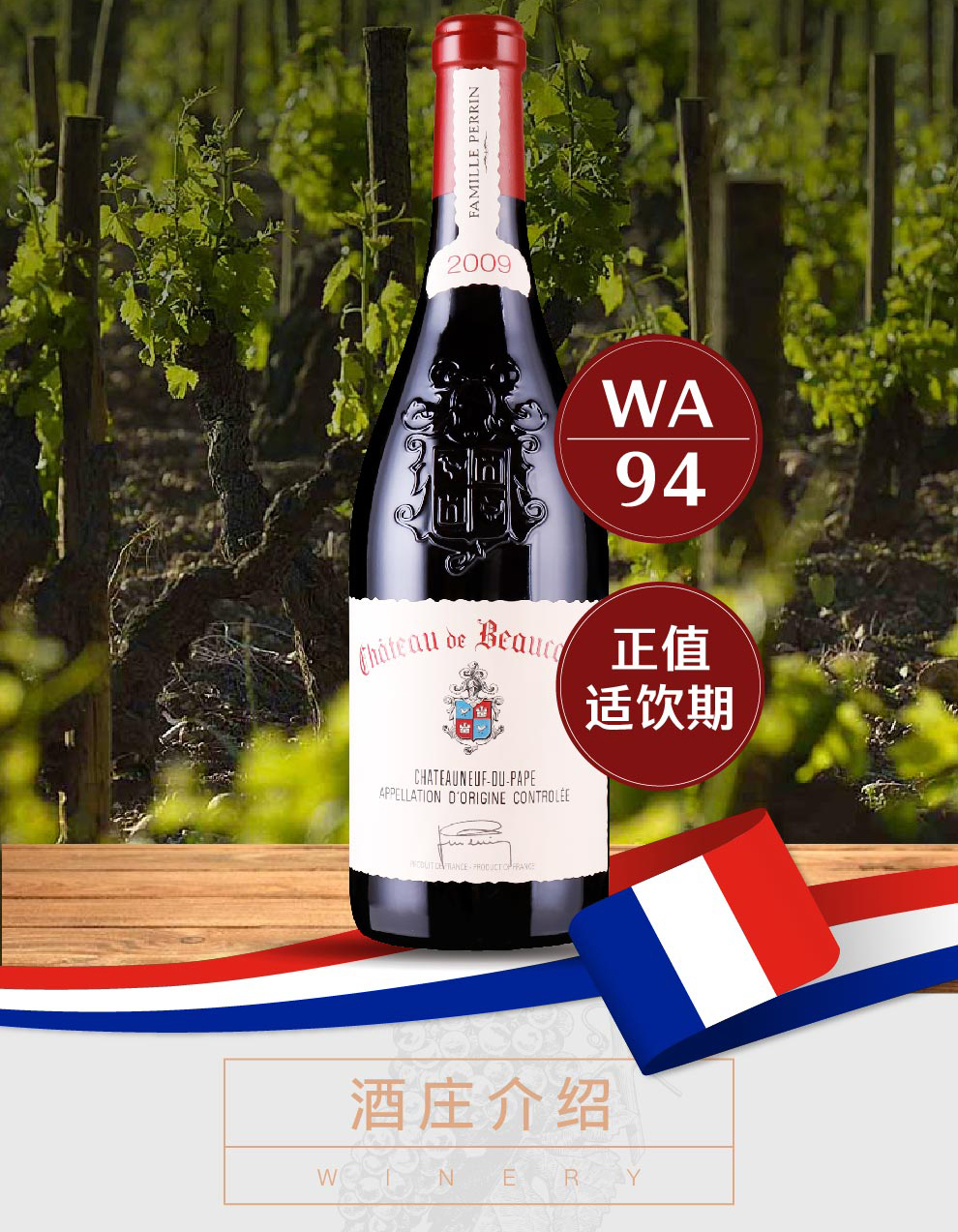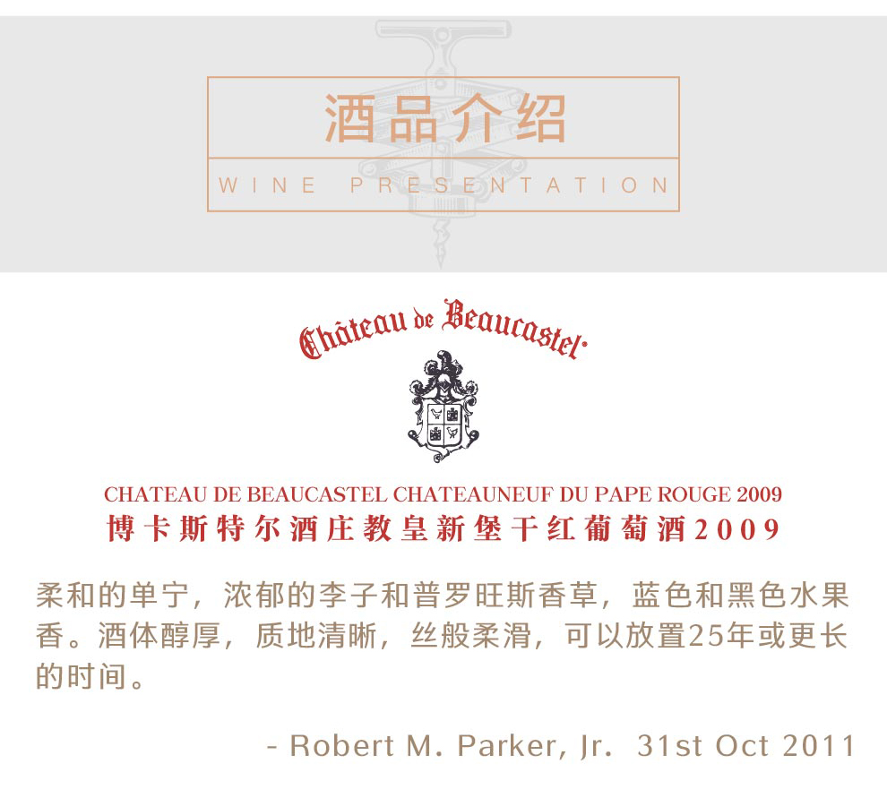 博卡斯特尔酒庄教皇新堡干红葡萄酒2009