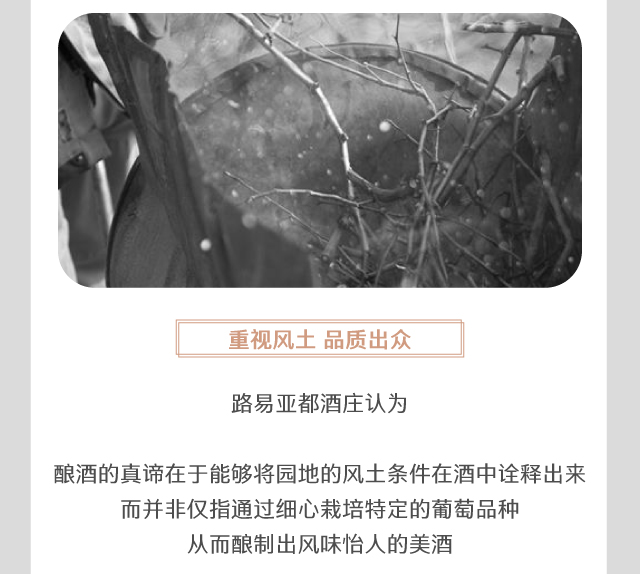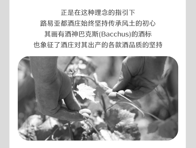 对路易亚都酒庄来说,酿酒的真谛在于能够将地方的风土条件在酒中诠释出来,而并非仅指细心栽培特定的葡萄品种,从而酿制出风味怡人的美酒。正是在这种理念的指引下,路易亚都成为了卓越品质的代名词。其画有酒神巴克斯(Bacchus)的酒标,象征着酒庄对其出产的各款酒品质的坚持,不管是产区级还是特级园级别的佳酿,路易亚都酒庄的品质都备受肯定。