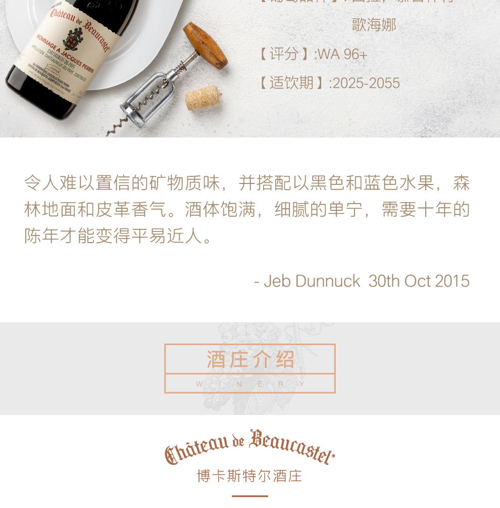 5. 因酒庄陈酿、装瓶及发货时间各不相同,2024年份新酒预计在2027年初至2027年末陆续到货,2023年份新酒预计在2026年初至2026年末陆续到货,2022年份新酒预计在2025年初至2025年末陆续到货,2021年份新酒预计在2024年初至2024年末陆续到货,其他年份酒品到货时间详见酒品购买页面标注。