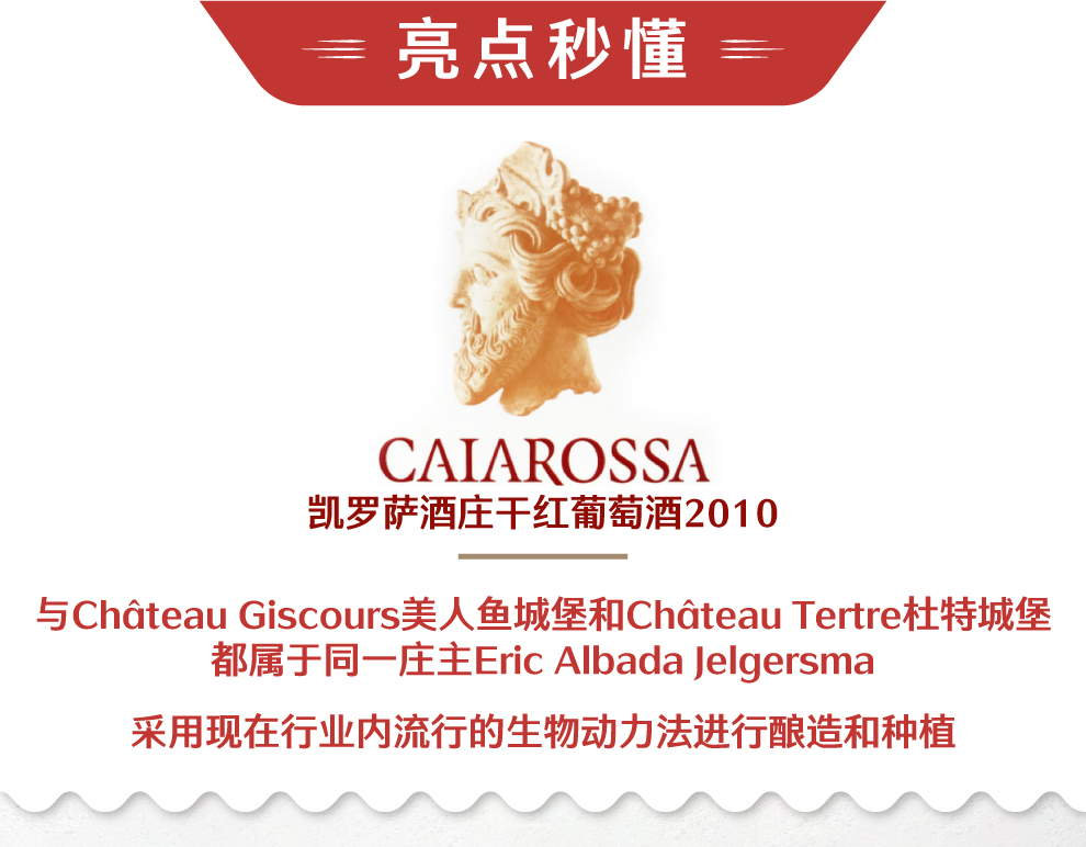 亮点:Caiarossa酒庄、Château Giscours美人鱼城堡和Château Tertre杜特城堡都属于同一庄主Eric Albada Jelgersma