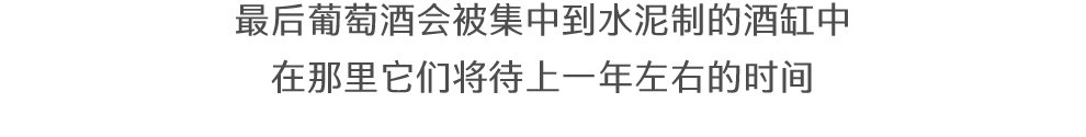 在经过严格的手工筛选与清洗之后红葡萄会进入到酒窖内部。之后,在不使用机械泵的情况下,葡萄颗粒利用引力的作用直接填满位于下面两层的水泥木头制酒槽。酒精发酵后是浸渍与乳酸发酵,这一过程会持续2个月,之后同样是在重力的作用下,葡萄酒会转移到位于地下的小、中、大不同规格的酒桶中。依靠本土的酵母,所有的发酵过程都是自发进行的。最后葡萄酒会被集中到水泥制的酒缸中,在那里它们将待上一年左右的时间。
