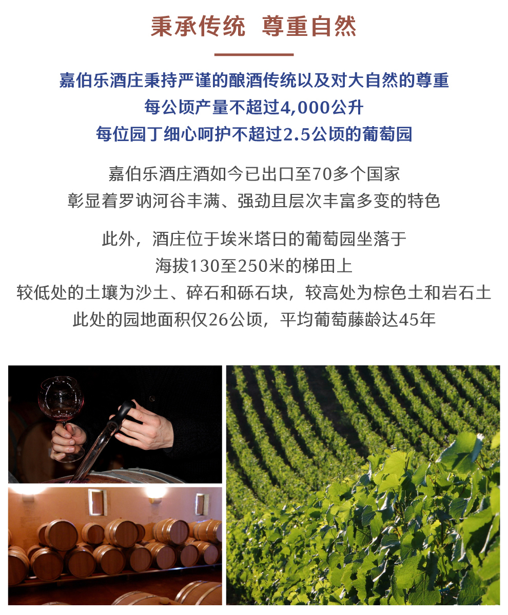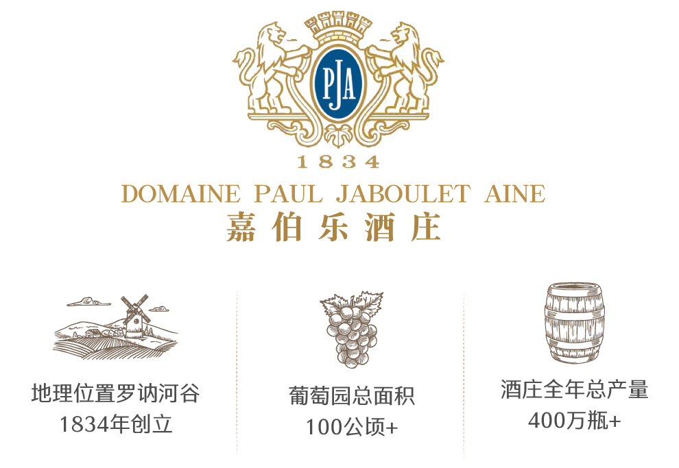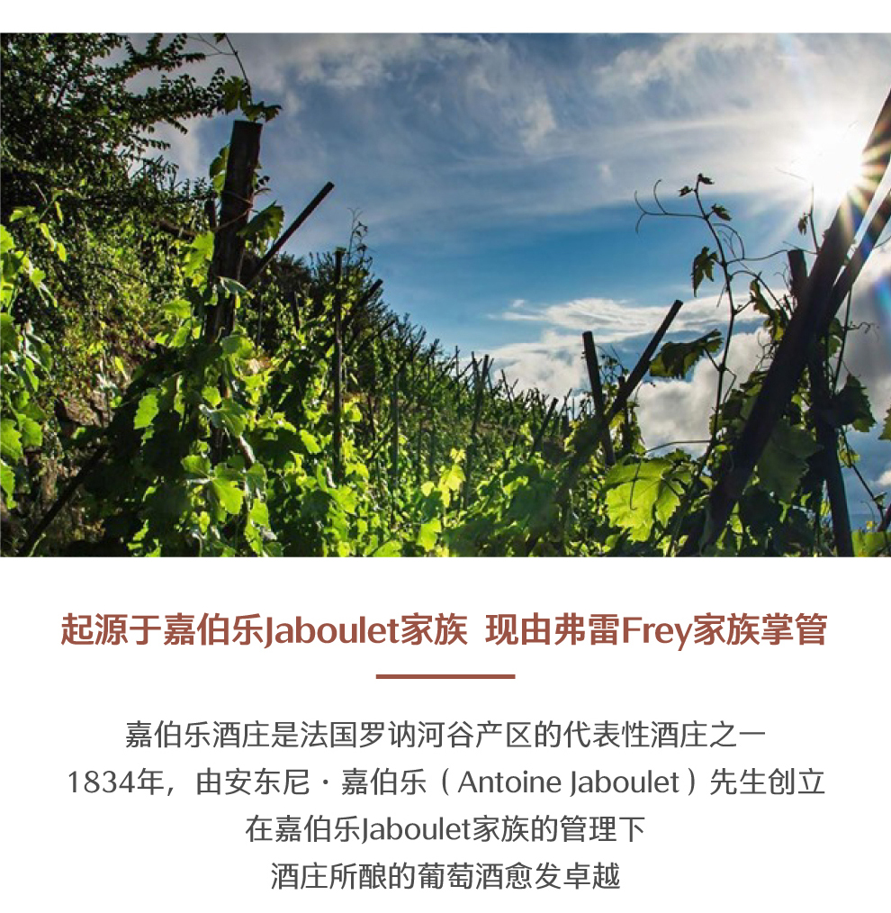 嘉伯乐酒庄(Domaine Paul Jaboulet Aine)是法国罗纳河谷产区最著名也是最具代表性的酒庄,1834年由安东尼•嘉伯乐(Antoine Jaboulet)先生创立至今,目前已发展成为拥有上百公顷葡萄园、年产酒量近400万瓶的超级酒庄。
