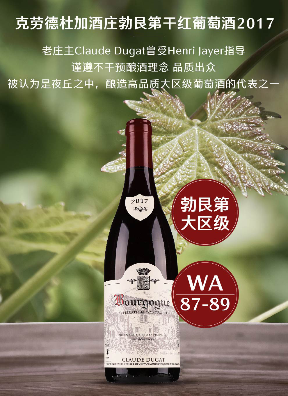 克劳德杜加酒庄勃艮第干红葡萄酒2017
