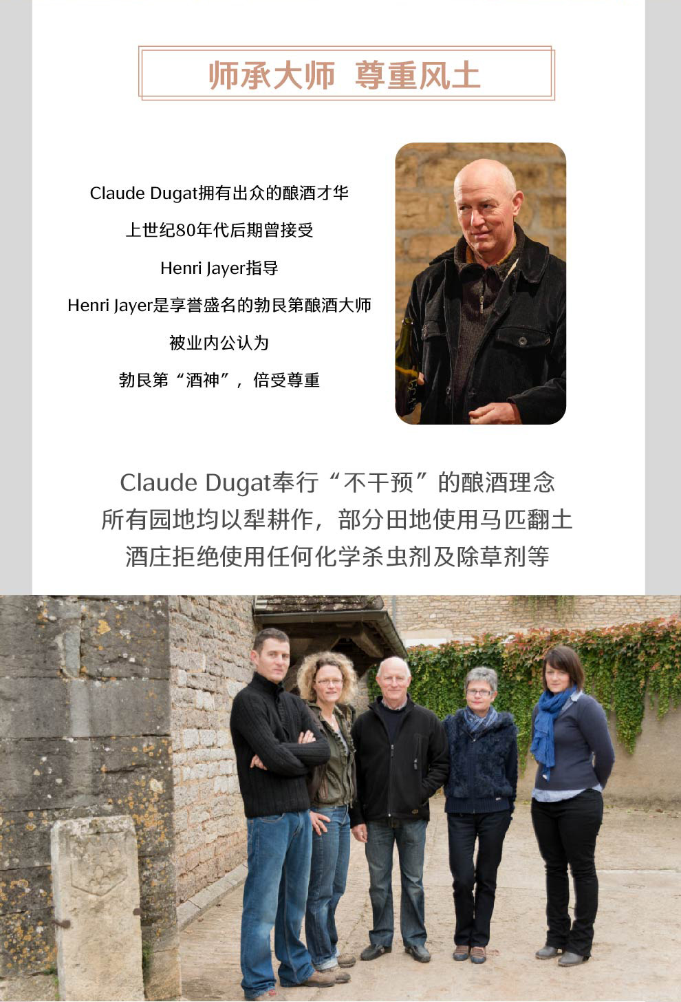 克劳德杜加(Claude Dugat)长期以来一直是勃艮第地区受人尊敬和喜爱的人物,是热夫雷-香贝丹地区数一数二的酿酒师,他对葡萄园了如指掌,这使他酿制出一些世界上最棒的酒。他的同名酒庄的葡萄酒则吸引了整个世界,在过去十年的大部分时间里,他的儿子Bertrand和女儿Laetitia与他一起并肩作战,克劳德(Claude)在2015年份将酒庄的管理权交给了他们。