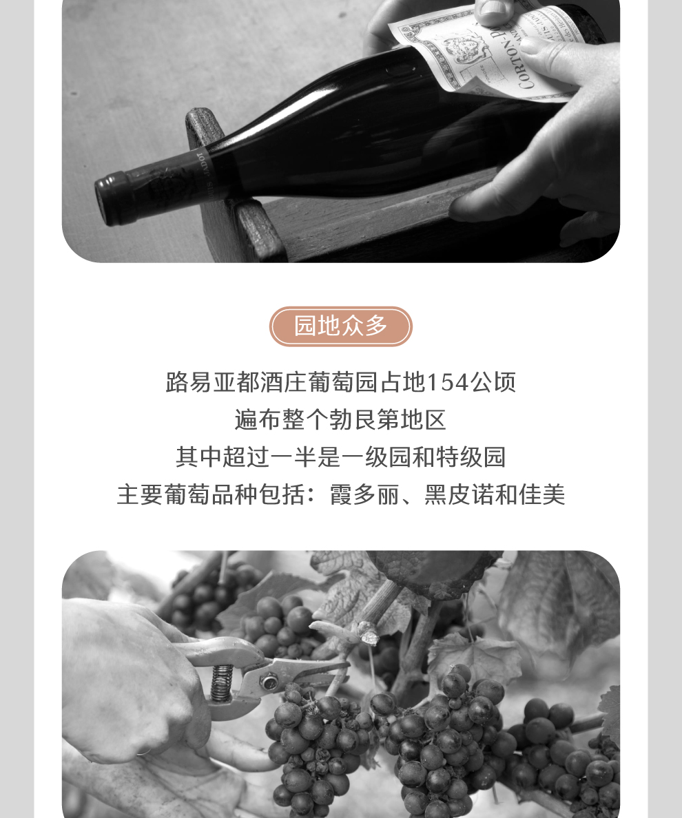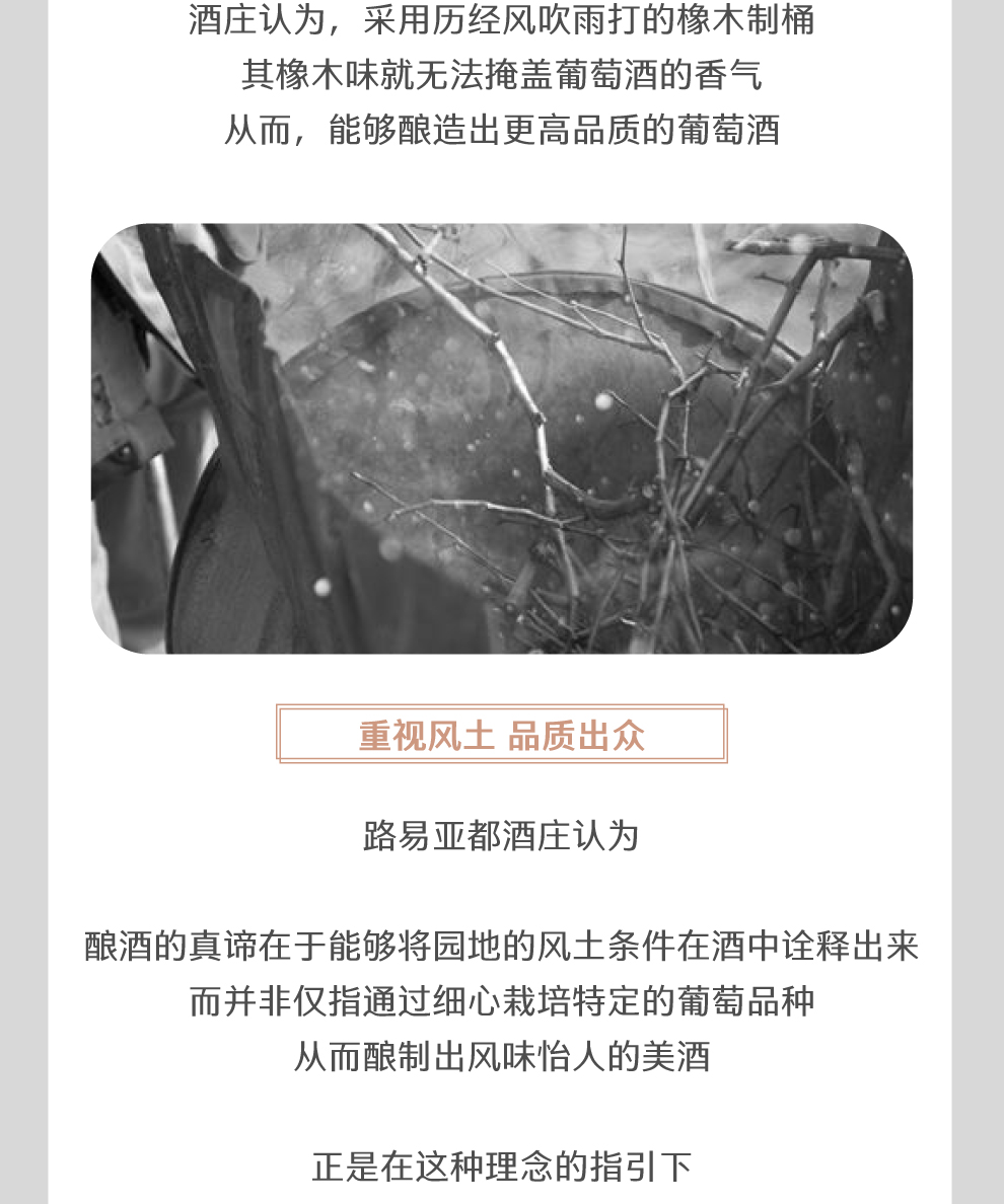 对路易亚都酒庄来说,酿酒的真谛在于能够将地方的风土条件在酒中诠释出来,而并非仅指细心栽培特定的葡萄品种,从而酿制出风味怡人的美酒。正是在这种理念的指引下,路易亚都成为了卓越品质的代名词。其画有酒神巴克斯(Bacchus)的酒标,象征着酒庄对其出产的各款酒品质的坚持,不管是产区级还是特级园级别的佳酿,路易亚都酒庄的品质都备受肯定。