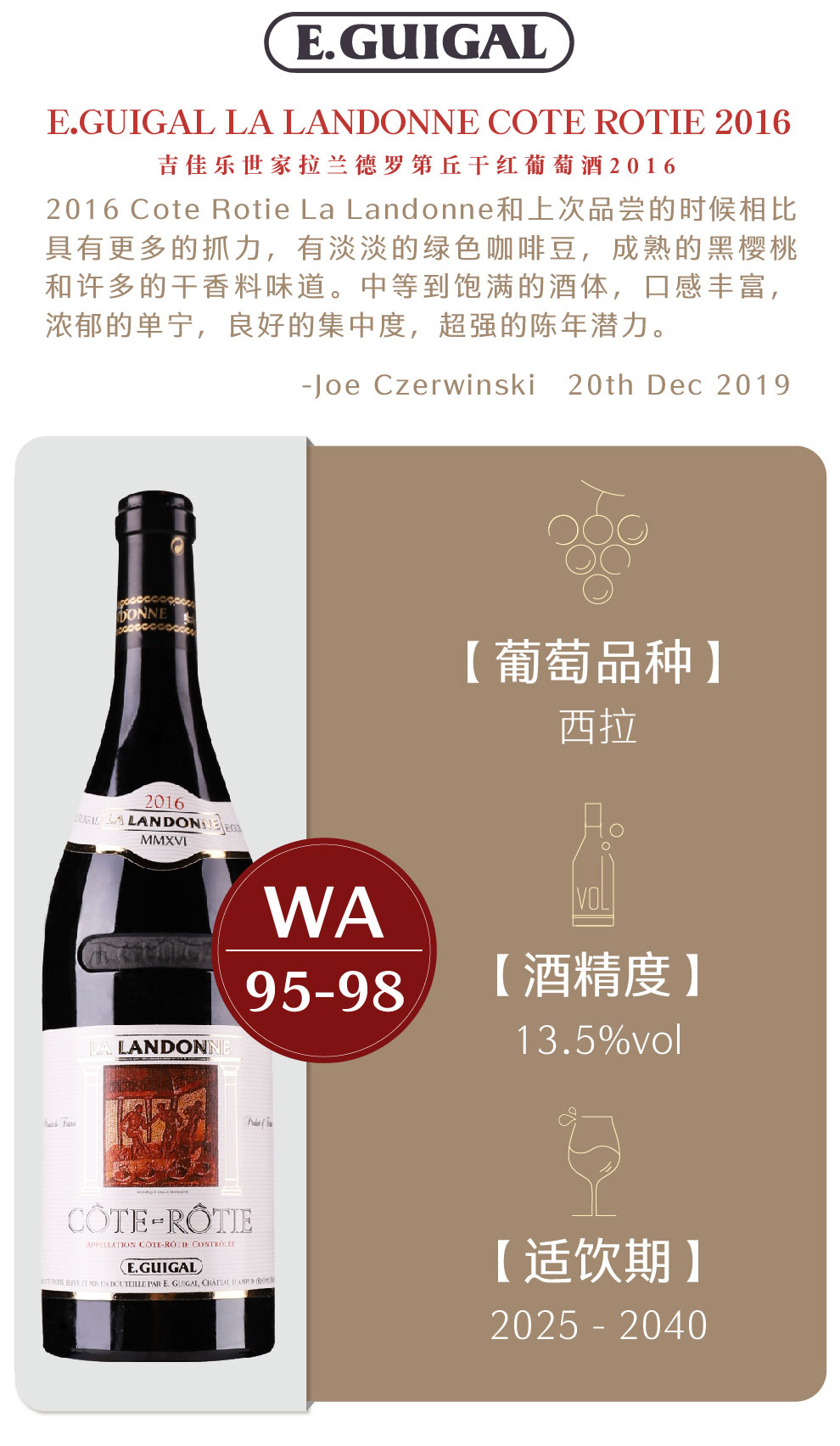 吉佳乐世家拉兰德罗第丘干红葡萄酒2016