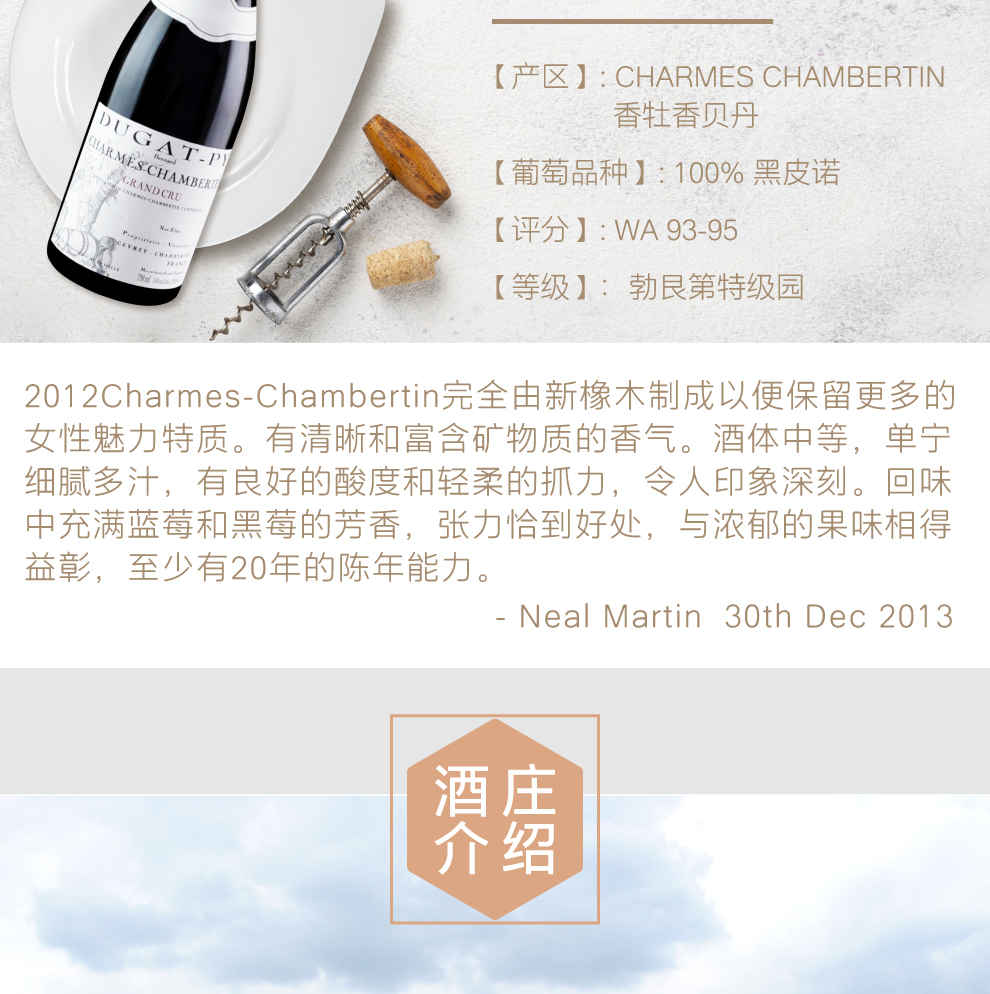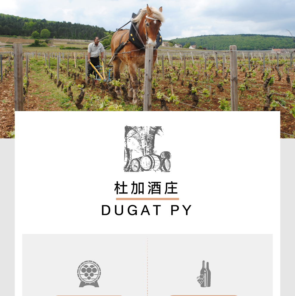 杜加酒庄的创始人杜加(Dugat)家族世代酿酒,早在17世纪初期,该家族就在热夫雷-香贝丹开始种植葡萄。现任庄主伯纳德•杜加( Bernard Dugat)是家族的第十二代传人,他一直致力于运用自己独到的酿酒知识,在葡萄园中辛勤耕耘,秉持先人超过4个世纪的酿酒精神和风格,为世人奉献美酒。自他接管酒庄以来,不断地对酒庄进行改造和扩建:1998年,酒庄买下了一级酒庄—小教堂(Petite Chapelle) 酒庄中的一块小地;2003年,酒庄又购置了长满古老葡萄树的玻玛酒庄( Chateau de Pommard)和默尔索酒庄 ( Chateau de Meursault)的小块土地。