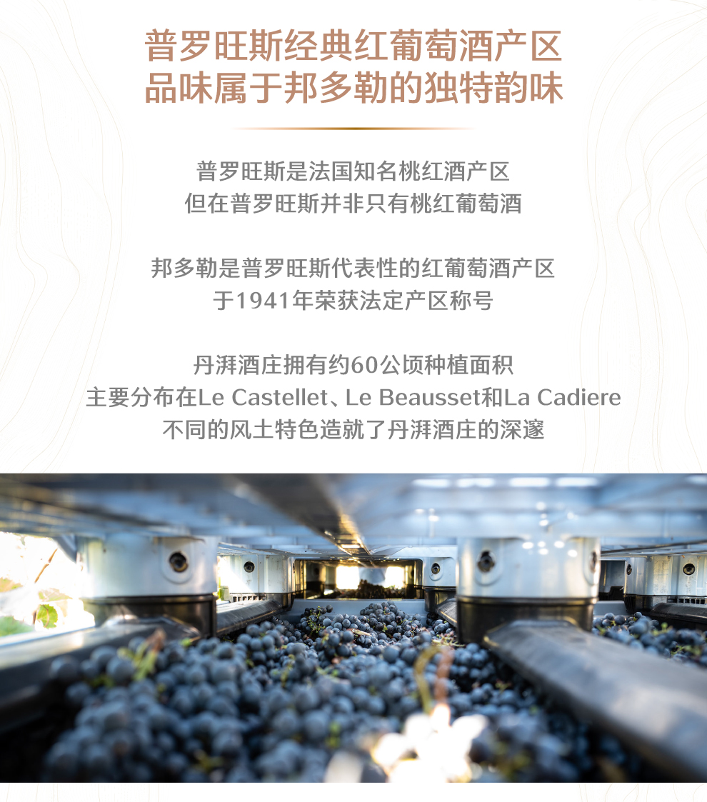 Domaine Tempier酒庄位于普罗旺斯的Castellet不远的地方,它的葡萄园分布在三个不同的地区:Le Castellet、Le Beausset和La Cadiere。葡萄品种有慕合怀特,歌海娜和其他当地的常见品种。