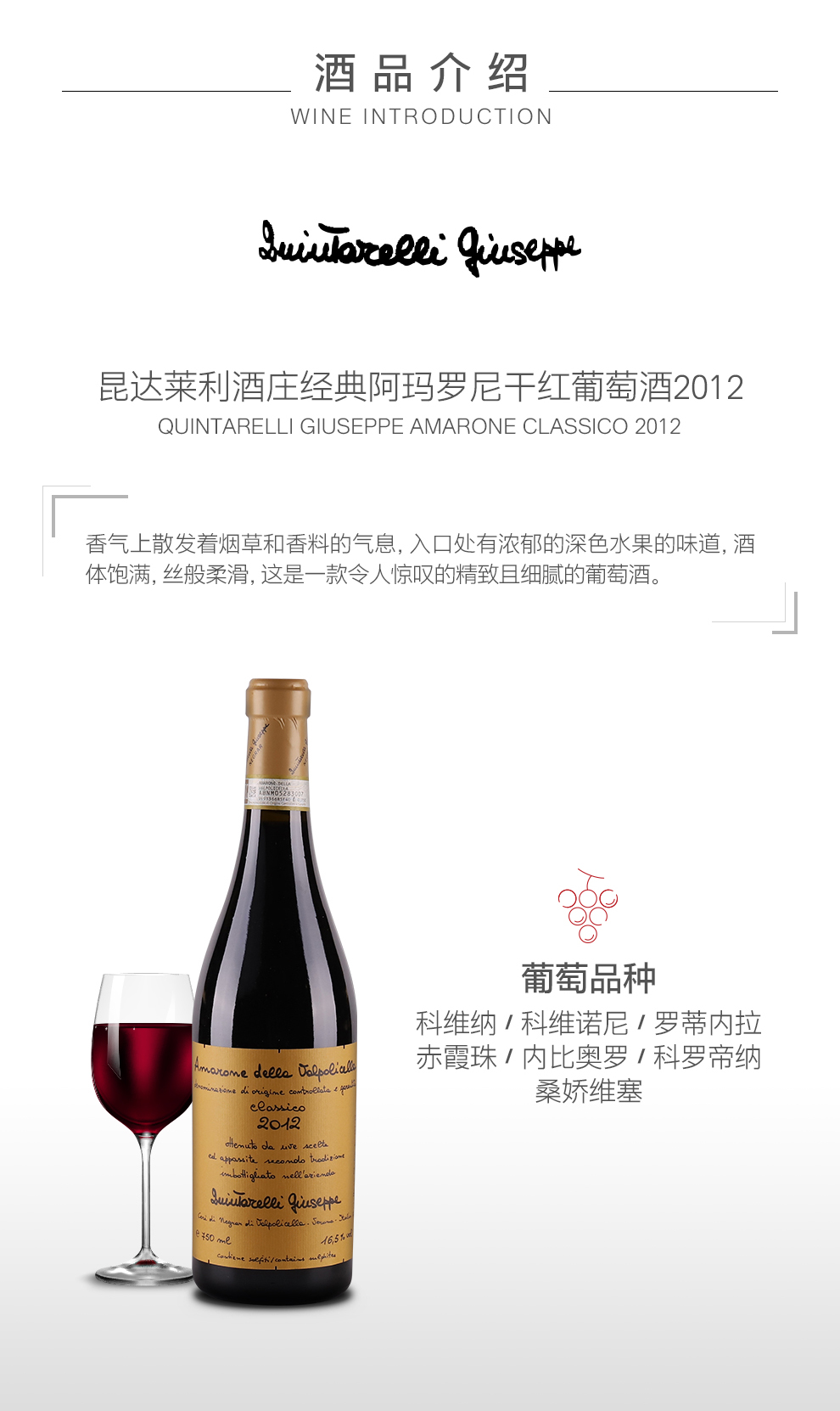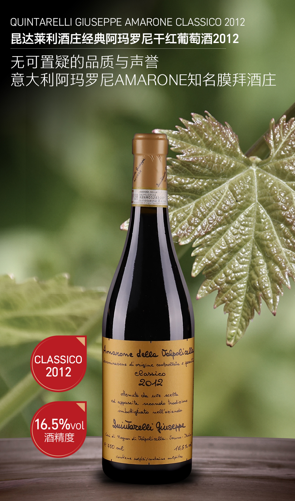 昆达莱利酒庄经典阿玛罗尼干红葡萄酒2012