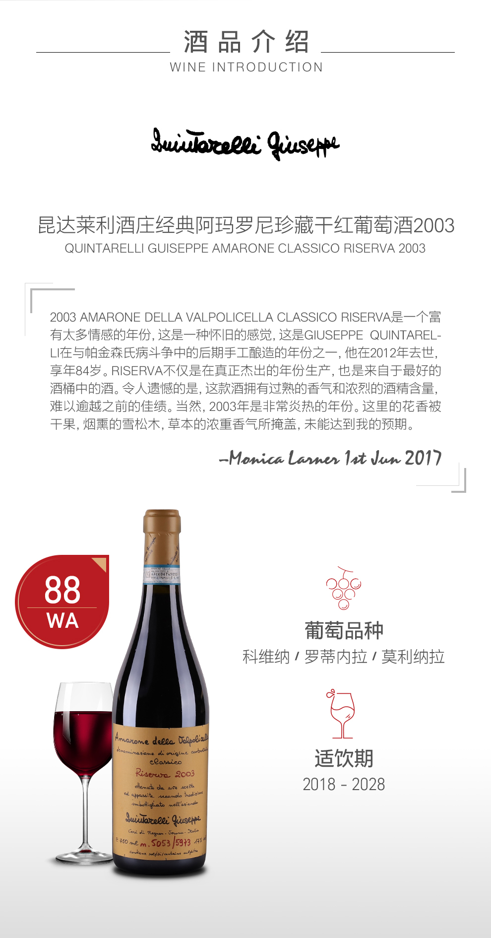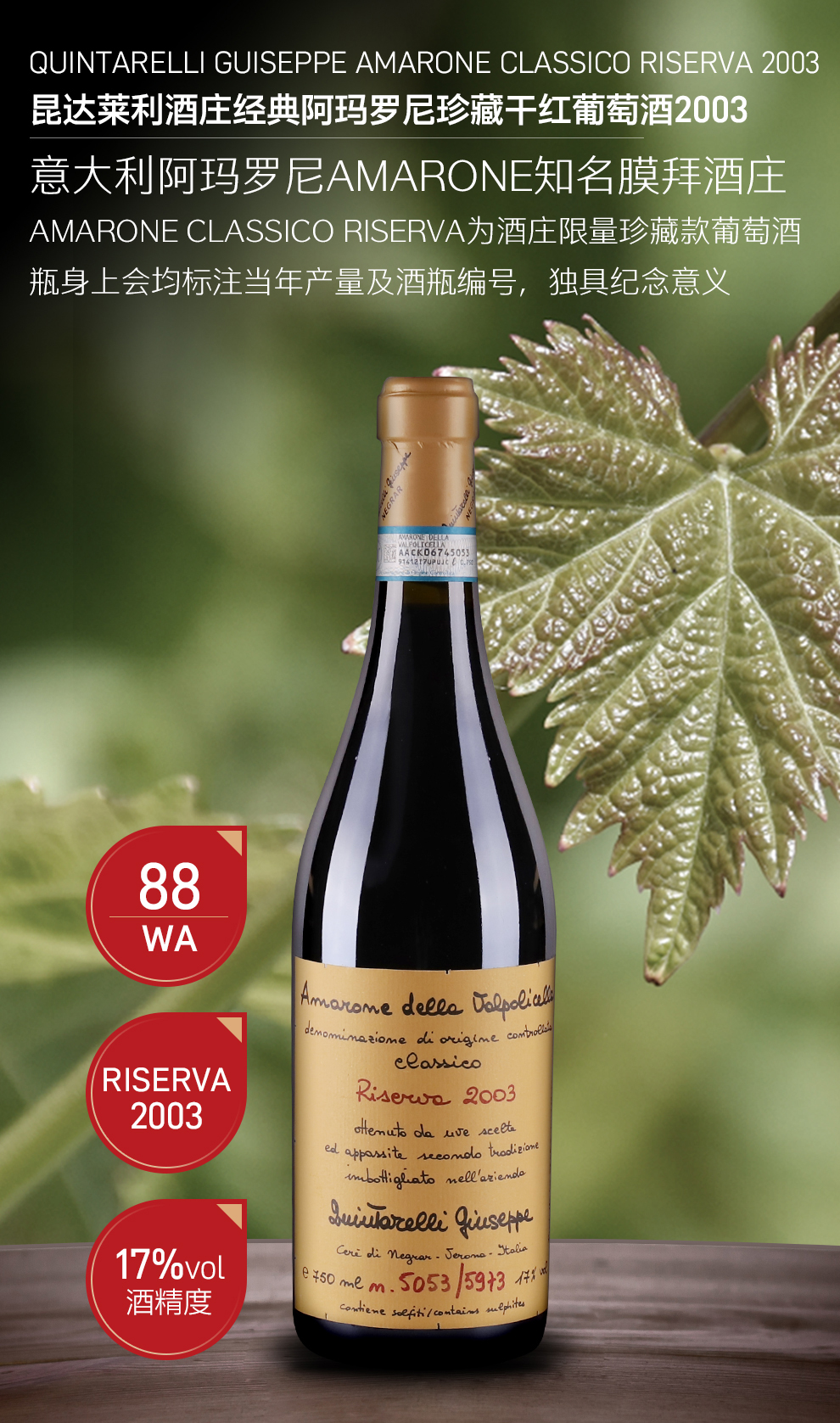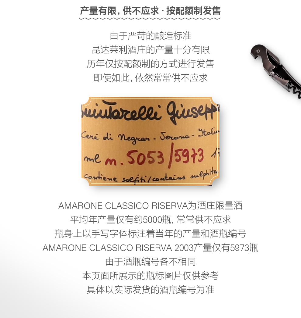 昆达莱利酒庄经典阿玛罗尼珍藏干红葡萄酒2003
