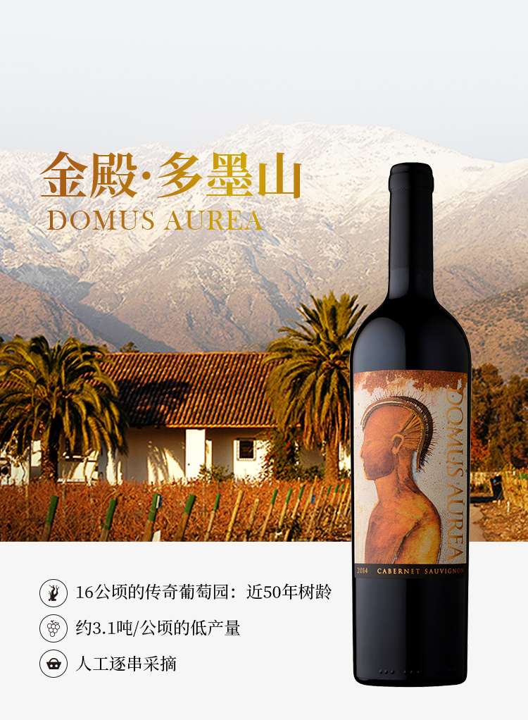 一般贸易 品牌商户 【2014年份】智利十八罗汉之一 车库酒王 金殿·多墨山 Domus Aurea 赤霞珠干红葡萄酒   Domus Aurea Red Wine 2014