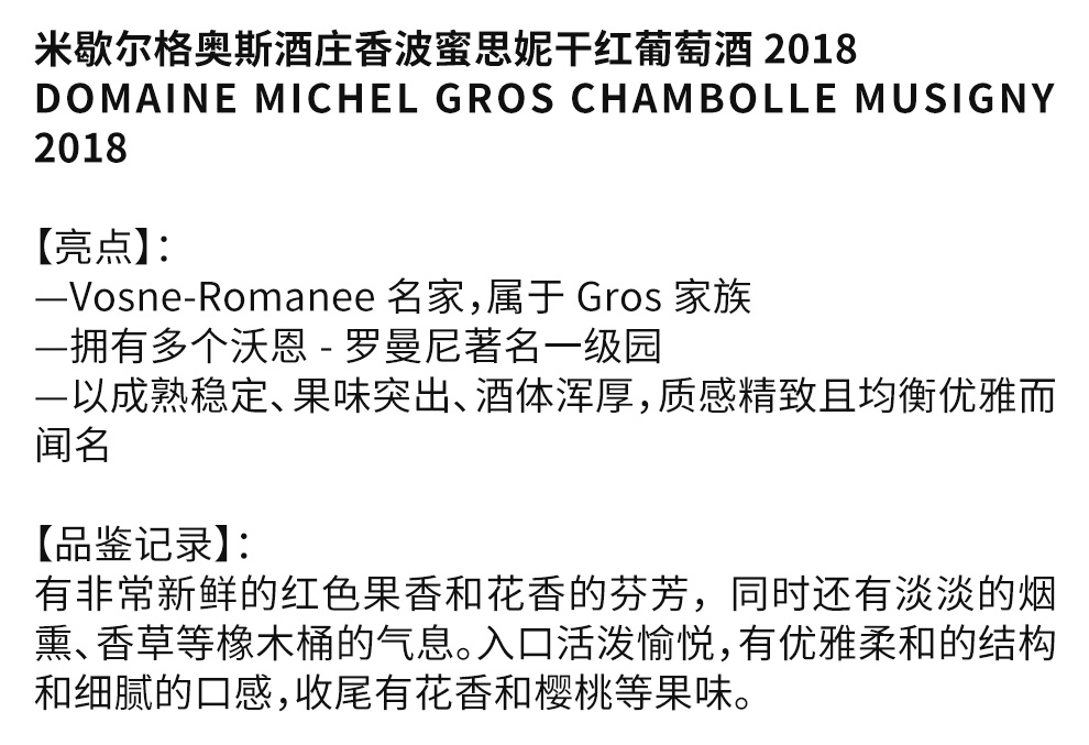 米歇尔格奥斯酒庄(Domaine Michel Gros)位于法国的勃艮第的沃恩-罗曼尼(Vosne-Romanée)产区,酒庄历史悠久,是勃艮第产区知名的家族性酒庄。