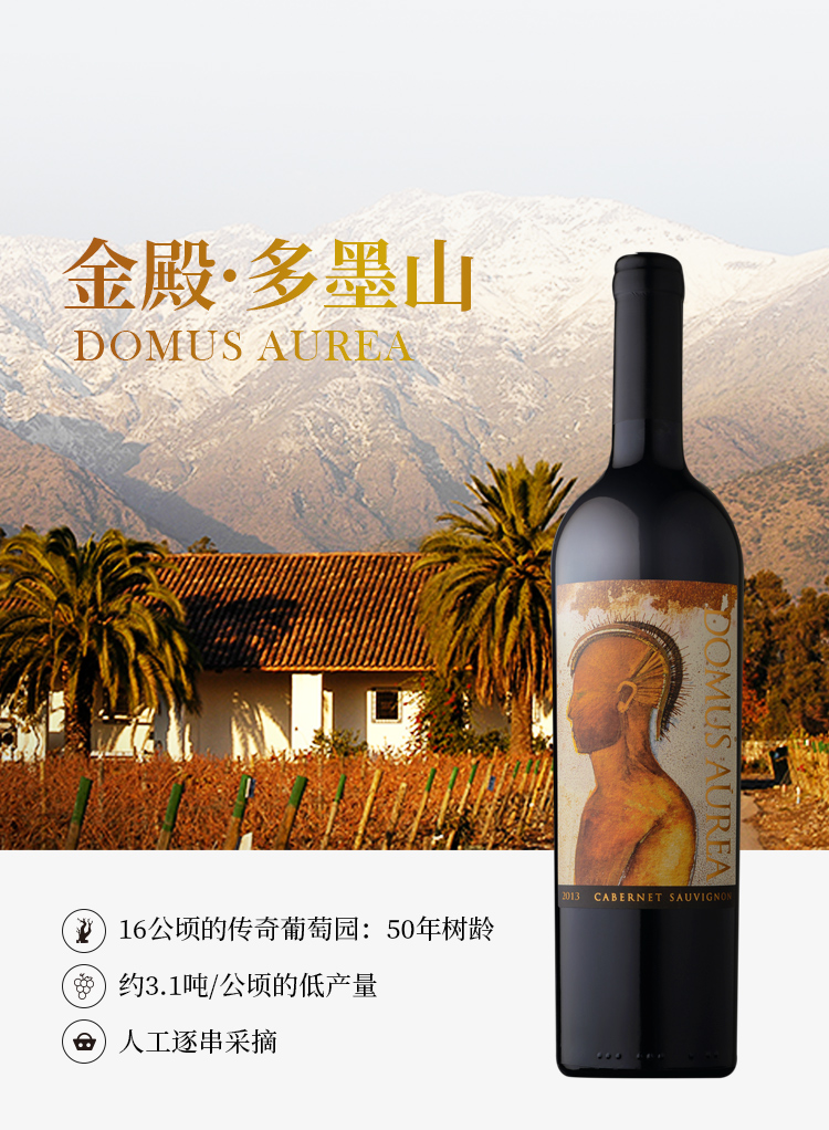 一般贸易 品牌商户 【2013年份】智利十八罗汉之一 车库酒王 金殿·多墨山 Domus Aurea 赤霞珠干红葡萄酒   Domus Aurea Red Wine 2013