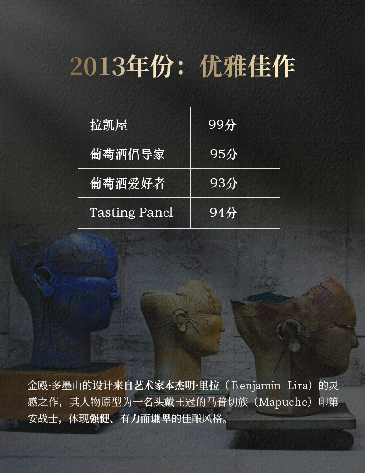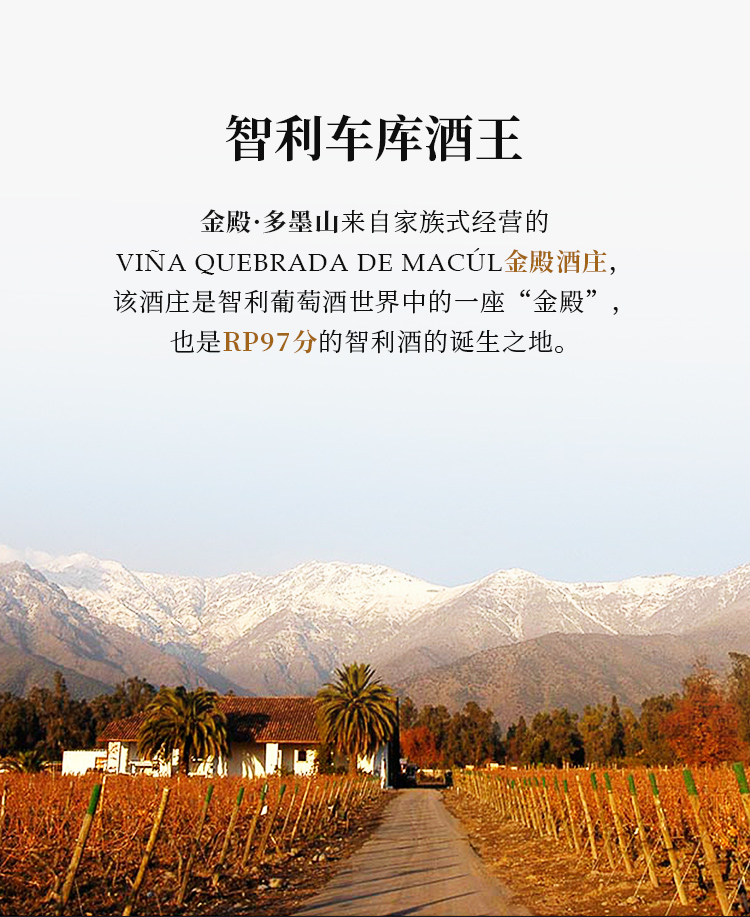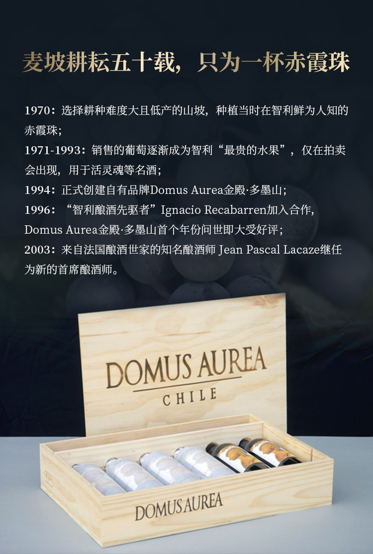 • 产品名称:【2013年份】智利十八罗汉之一 车库酒王 金殿·多墨山 Domus Aurea 赤霞珠干红葡萄酒