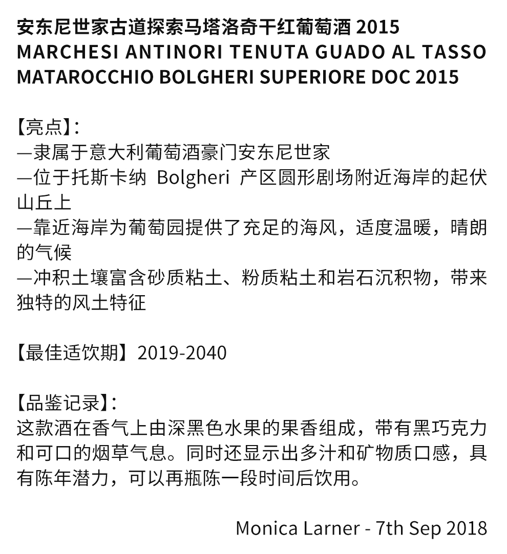 此外,安东尼世家在意大利还有碧波园(Peppoli)、帕西诺修道院(Badia a Passignano)、古道探索酒庄(Tenuta Guado al Tasso)、平安园(Pian delle Vigne)、蒙特罗酒庄(Tenuta Monteloro)和萨拉城堡(Castello della Sala)等酒庄,出产各类风格的精品红、白葡萄酒。除了意大利本土外,安东尼世家的葡萄酒版图也延伸至美国、匈牙利和智利等其他国家,挖掘世界各地独特风土酿造优质葡萄酒的潜力,包括美国纳帕谷(Napa Valley)的安蒂卡酒庄(Antica)和智利的种马园酒庄(Haras De Pirque)等。