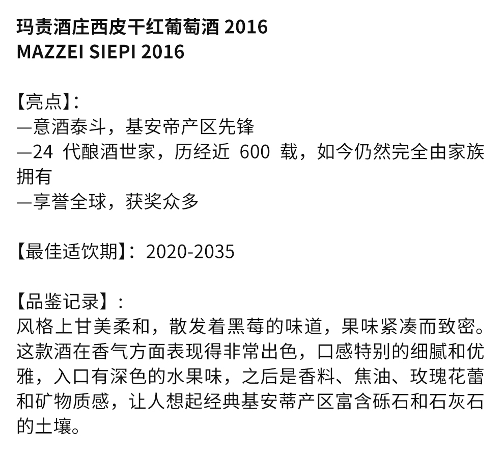 5. 因酒庄陈酿、装瓶及发货时间各不相同,2024年份新酒预计在2027年初至2027年末陆续到货,2023年份新酒预计在2026年初至2026年末陆续到货,2022年份新酒预计在2025年初至2025年末陆续到货,2021年份新酒预计在2024年初至2024年末陆续到货,其他年份酒品到货时间详见酒品购买页面标注。