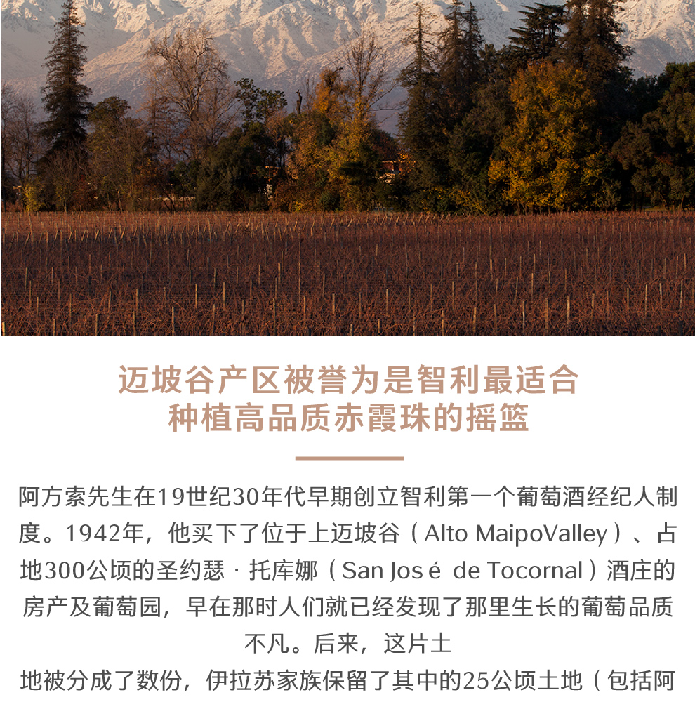 迈坡谷产区被誉为是智利最适合种植高品质赤霞珠的摇篮持续稳定的品质