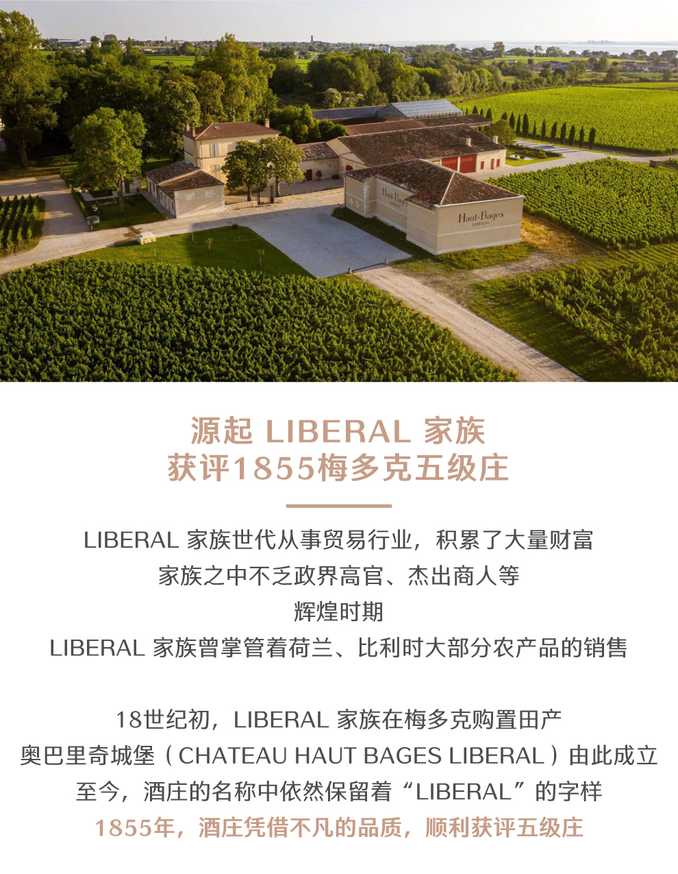 LIBERAL家族自十八世纪初开始管理这座庄园。家族世代从事贸易中介,当时,掌控着荷兰、比利时两国大部分农产品的销售。家族的姓氏曾被标在地图上,意指“自由主义者”,这使得家族成员曾长期被邀请列席世界各国自由主义政党的圆桌会议。